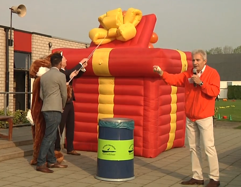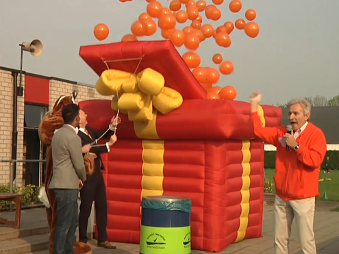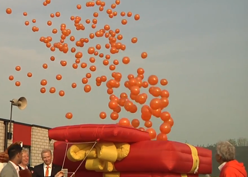 Wethouder Strijk verrichte vanmorgen de officiële opening door een megamand oranje ballonnen op te laten. (Foto's: PR).