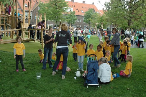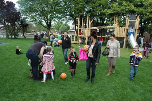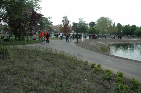 Gisteren was het de hele dag feest in het volkspark in De Kooi. Al om 9.00 uur begonnen de activiteiten die waren georganiseerd om de ingebruikname van het monumentale park luister bij te zetten. Natuurgids Dick de Vos nam belangstellenden mee op een bomen- en vogeltocht door het park. ’s Middags – na de officiële opening – was er nog een rondwandeling. Dit keer onder leiding van stadshistoricus Cor Smit die verhaalde over de geschiedenis van het park.