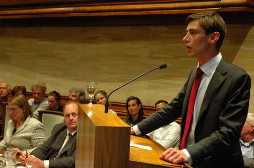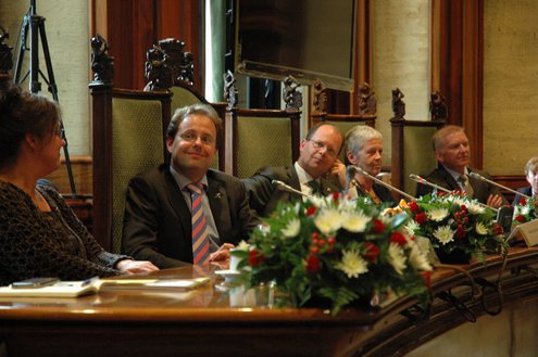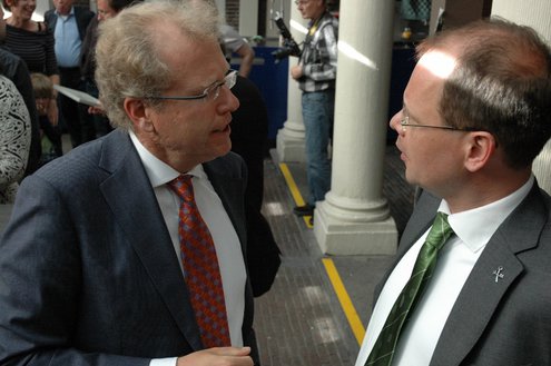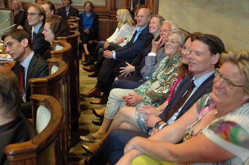 Leiden heeft een nieuw college van Burgemeester en Wethouders. Gistermiddag nam eerst de gemeenteraad afscheid van de vertrekkende wethouders Jan-Jaap de Haan en Pieter van Woensel, vervolgens was het de beurt aan de rest van de stad. Dat tweede afscheid vond plaats in De Lakenhal waar een receptie voor de twee werd gehouden.