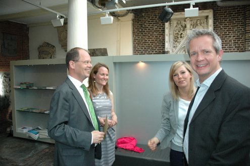 De nieuwe wethoudersploeg met van links naar rechts Roos van Gelderen (SP), Frank de Wit en Robert Strijk (D66), Marleen Damen (PvdA) en Paul Laudy (VVD).