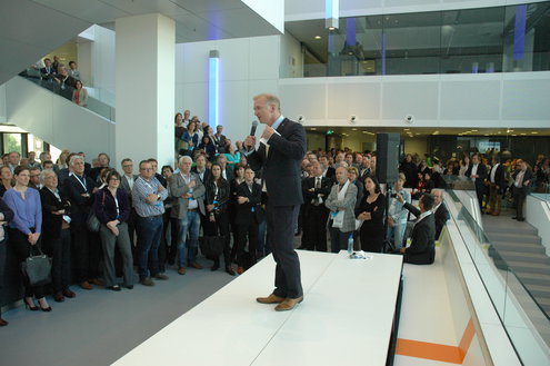 Of het nou de beloofde kennismaking was met het nieuwe college of de locatie, Level Leiden, feit was ruim 600 ondernemers gisteren afkwamen op de jaarlijkse ondernemersborrel van de gemeente Leiden. Dit keer niet alleen een praatje van D66-wethouder Strijk van Economische Zaken, maar ook een welkomswoord van de burgemeester en een introductie van alle wethouders. Met de wethouders Paul Laudy (VVD) en Marleen Damen (PvdA) was het voor ondernemend Leiden een eerste kennismaking.