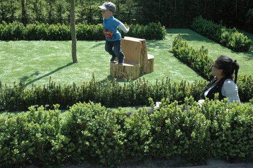 Een trotse Artem Tolmachev in de enorme tuin van teddy Kids aan de Rijnsburgerweg. (Foto's/video: Chris de Waard).