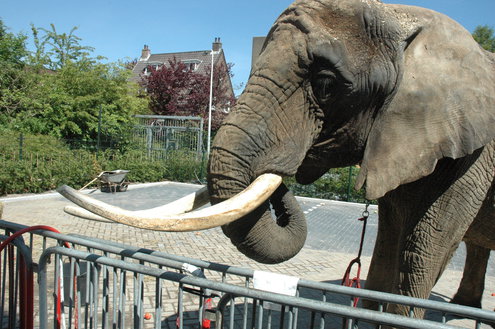 Bedrijfsleider Artem Tolmachev van Teddy Kids is hartstikke blij met de komst van de olifant bij de opening van de nieuwste Teddy Kids vestiging aan de Rijnsburgerweg. Maar een volgende keer zou hij het niet meer dan. “Dan verzinnen we wel iets nóg originelers, zónder wilde dieren.” Dat heeft Dick de Vos dan toch maar mooi bereikt. De fractievoorzitter van de Leidse Partij voor de Dieren kwam ook even langs en ging het gesprek aan met Tolmachev. “Een heel plezierig gesprek trouwens,” zegt Artem.