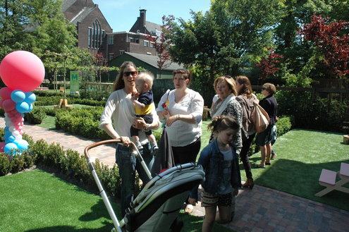 Het was zaterdag druk bij ‘De Keet’. Het tot kinderdagverblijf omgebouwde rijksmonument – in 1905 werd ontworpen door de Leidse architect Jesse – is in oude luister hersteld. Door het sousterrain uit te graven is er bovendien een verdieping bijgekomen. Er zijn nu vier etages, elke verdieping is ingericht voor een specifieke leeftijdsgroep. Dat begint bij baby’s van een maand of drie oud.