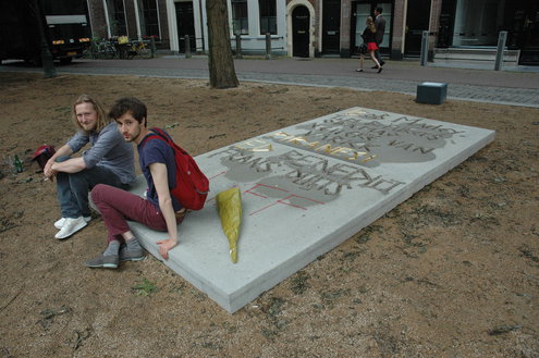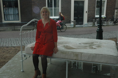 Marleen Hartjes won gisteren de Frans de Witprijs tijdens de opening van de openluchttentoonstelling Beelden in Leiden dat dit jaar bestaat uit beelden die beton als basismateriaal hebben. Hartjes maakte een betonnen matras. (Foto's: Chris de Waard).