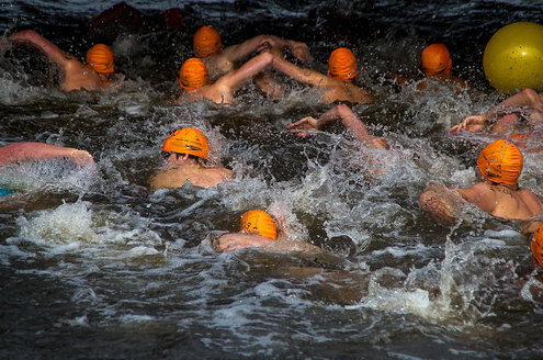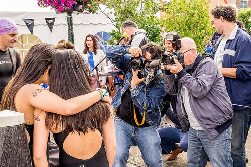De wonderen zijn de wereld nog niet uit. Bij de Speedo Swim In werd vrijdag zelfs over het water gelopen. (Foto's: J.P. Kranenburg).