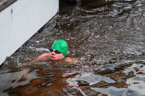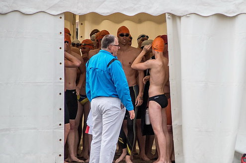 De wedstrijdzwemmers hadden zich massaal ingeschreven voor Swim-in Leiden. De minioren tot 12 jaar openden het bal in de gracht met een wedstrijd over 250 meter. De jongste onder hen, Fieke Hoogduin, was net 8 jaar. Daar tegenover stonden de masters, de veteranen onder de zwemmers. Daar hield de 75-jarige Nic Geers het vaandel van zijn generatie hoog. Hij zwom, zoals overigens elk weekend, zijn race over 1.000 meter. Een triomftocht door de gracht, dankzij de massaal toegestroomde toeschouwers op de bruggen over het parcours.