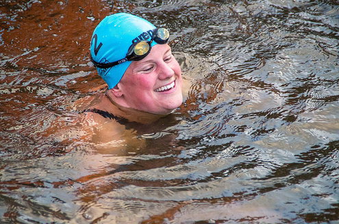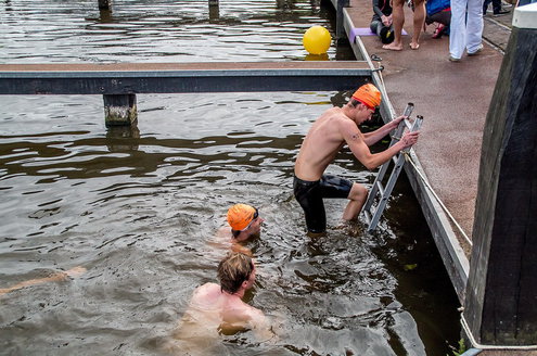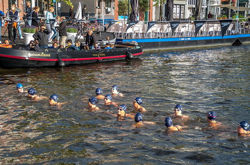 Een gracht die ook dit jaar weer feilloos door de keuring van het Hoogheemraadschap van Rijnland kwam. ‘Zwemwaterkwaliteit’ zo oordeelde de instantie voor de vierde keer. En dus konden de zwemmers met goed vertrouwen het donkere water inspringen.