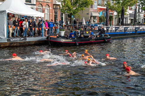 Voor de vierde keer verzorgden Aquamania en LZ1886 deze open water zwemwedstrijd in het hart van Leiden. Niet verwonderlijk dat het deelnemersaantal fors hoger lag. Maar het succes verbaasde zelfs de organisatie. De zwemmers kwamen niet alleen uit de wijde Leidse regio, maar ook uit Hippolytushoef, Breda, Enschede en zelfs Duisburg en Dresden om in de Leidse gracht te racen.