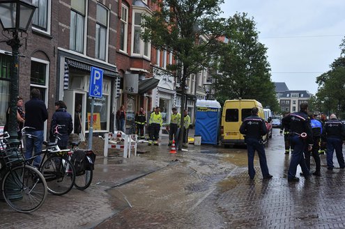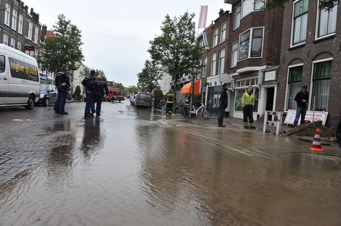 De politie sloot de straat tijdelijk af, terwijl de brandweer het water wegpompte.