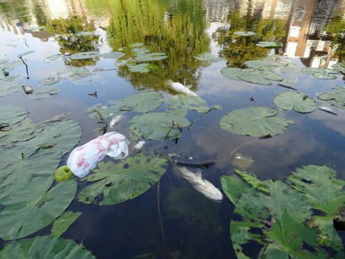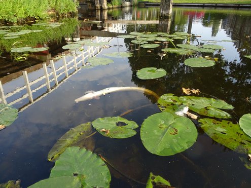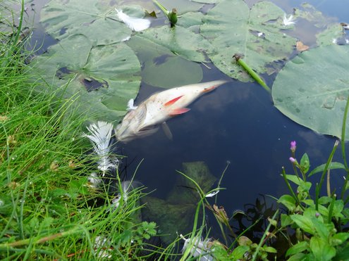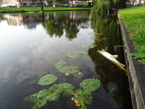 In de Rijnsburgersingel sterft het van de dode vissen. Wat de oorzaak precies is, is nog onduidelijk maar eerder deze week werd er ook al een reddingsactie op touw gezet om naar adem snakkende vissen te redden. Dat was even verderop bij de Nieuwe Mare.