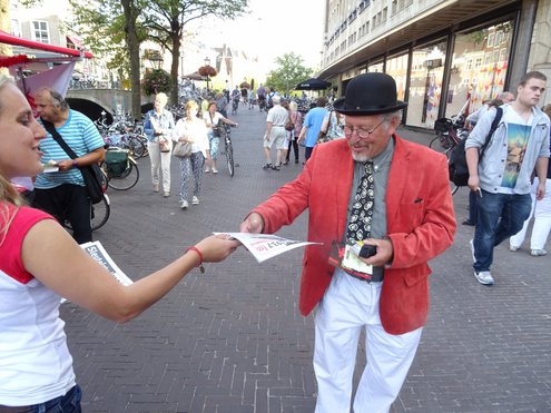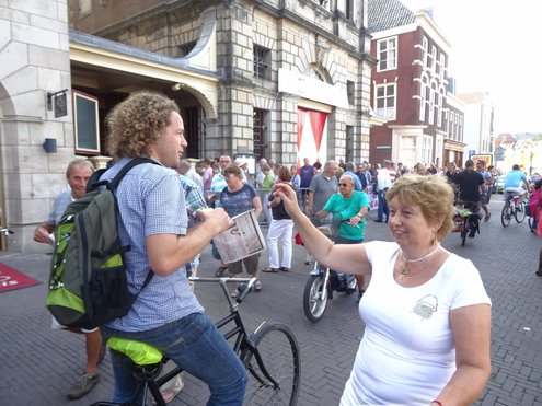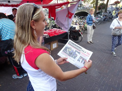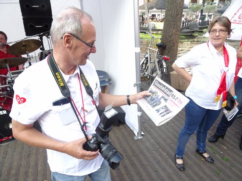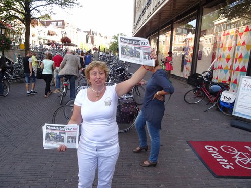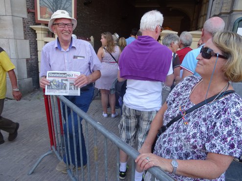 Om het wachten te verzachten was er de Sleutelstadkrant die deze week in heel Leiden huis-aan-huis wordt verspreid. (Foto's/video: Chris de Waard).