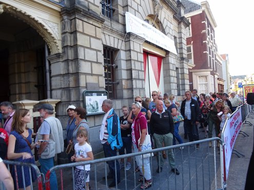 Wachtende mensen zo ver het oog reikt, is vast prik bij de inschrijving voor Hutspot, Haring & Wittebrood.