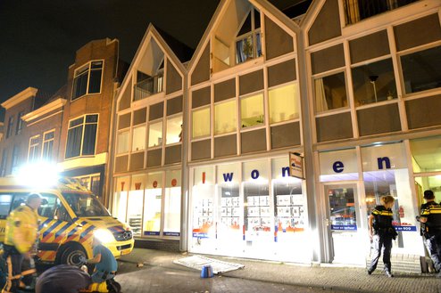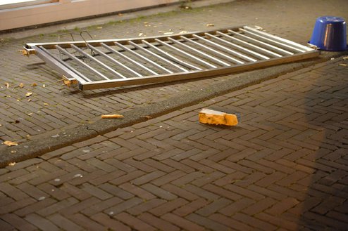 Twee mannen raakten gewond toen ze gisteren met hek en al van een balkon naar beneden vielen bij een woning aan de Oude Herengracht. (Foto's: Wilco Devilee).