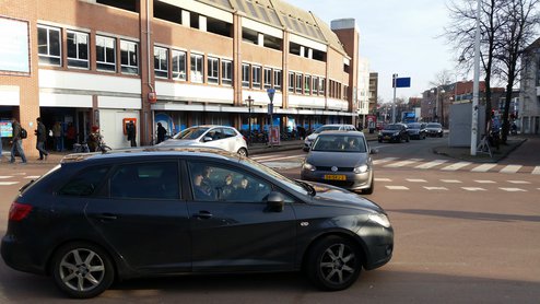 Reizigersvereniging ROVER waarschuwde al meteen toen de opnieuw ingerichte Korevaarstraat enkele weken geleden werd opgeleverd: Dit wordt chaos. Als op 14 december de 735 dagelijkse bussen weer gaan rijden over de Breestraat en de Korevaarstraat loopt de boel, zeker op zaterdagen, compleet vast. Oorzaak: de afslag aan het begin de de Korevaarstaat, bij de ingang van de parkeergarage van supermarkt Hoogvliet.