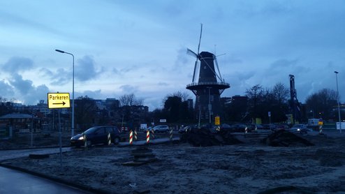 De afgelopen weken is het terrein gereed gemaakt voor de bouw. Ook zijn de weg en het fietspad verlegd en is er een tijdelijk parkeerterrein aangelegd langs het water van de Rijnsburgersingel. In februari start de bouw van de ondergrondse garage voor 525 auto’s. Het wordt met 22 meter de diepste van Nederland. De bouw begint voor een groot deel onder water. Als eerste worden er damwanden 30 meter diep de grond in geslagen. Vervolgens worden de wanden gegoten. Begin 2017 moet de garage worden opgeleverd en verkast het hele bouwcircus naar de Garenmarkt voor de tweede ondergrondse garage.