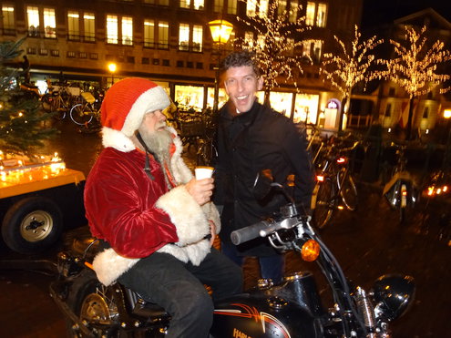 Peter ‘Santa’ Labrujère heeft dit jaar iets unieks. De goedgemutste kersman heeft een helm onder zijn gebreide kerstmuts. Vorig jaar kreeg de kerstman twee keer een bekeuring voor het niet dragen van een helm op de motor. Toen Jacqueline ter Haar van wolwinkel ’n Steekje Los op de Oude Rijn dat hoorde, pakte ze haar breipennen en ging aan de slag. Het resultaat mag er zijn!