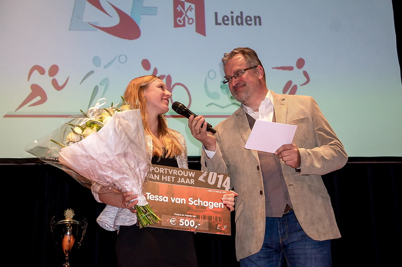 In een overvolle Aalmarktzaal zijn vanavond de Leidse sportprijzen uitgereikt. De beste sportman van 2014 werd basketballer Worthy de Jong (ZZ Leiden), de beste sportvrouw sprintster Tessa van Schagen (Leiden Atletiek) en de prijs voor de beste sportploeg van 2014 ging naar de waterpolo-dames van ZVL BAM. Hun coach, Koen Plasmeijer, werd – opnieuw – coach van het jaar.