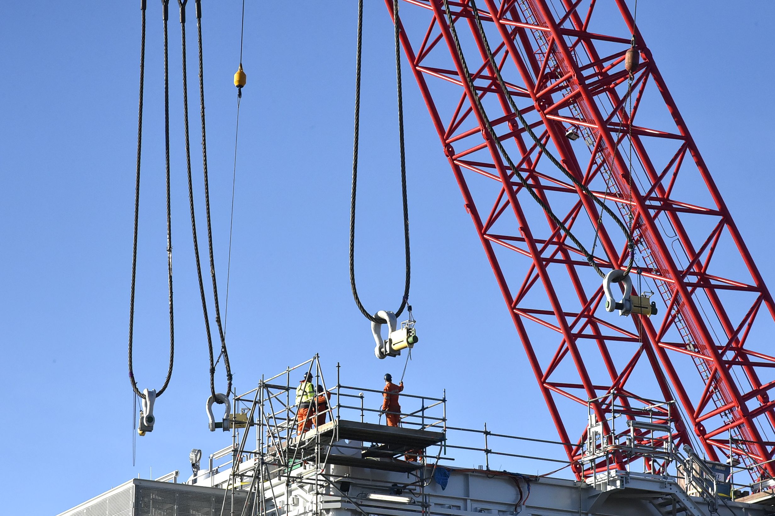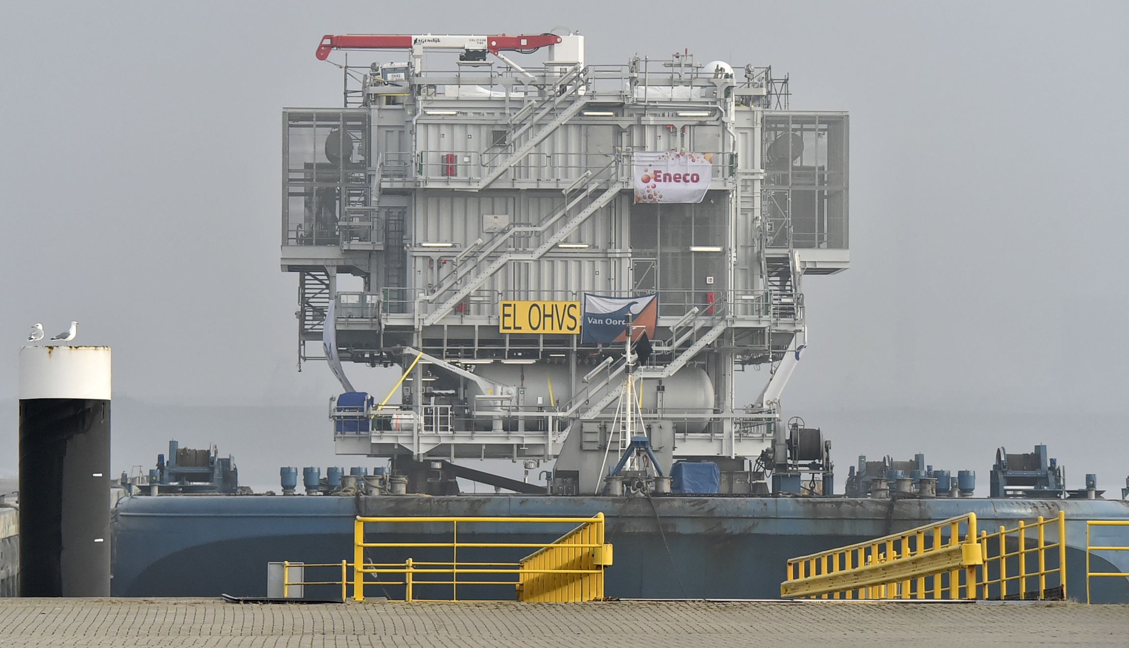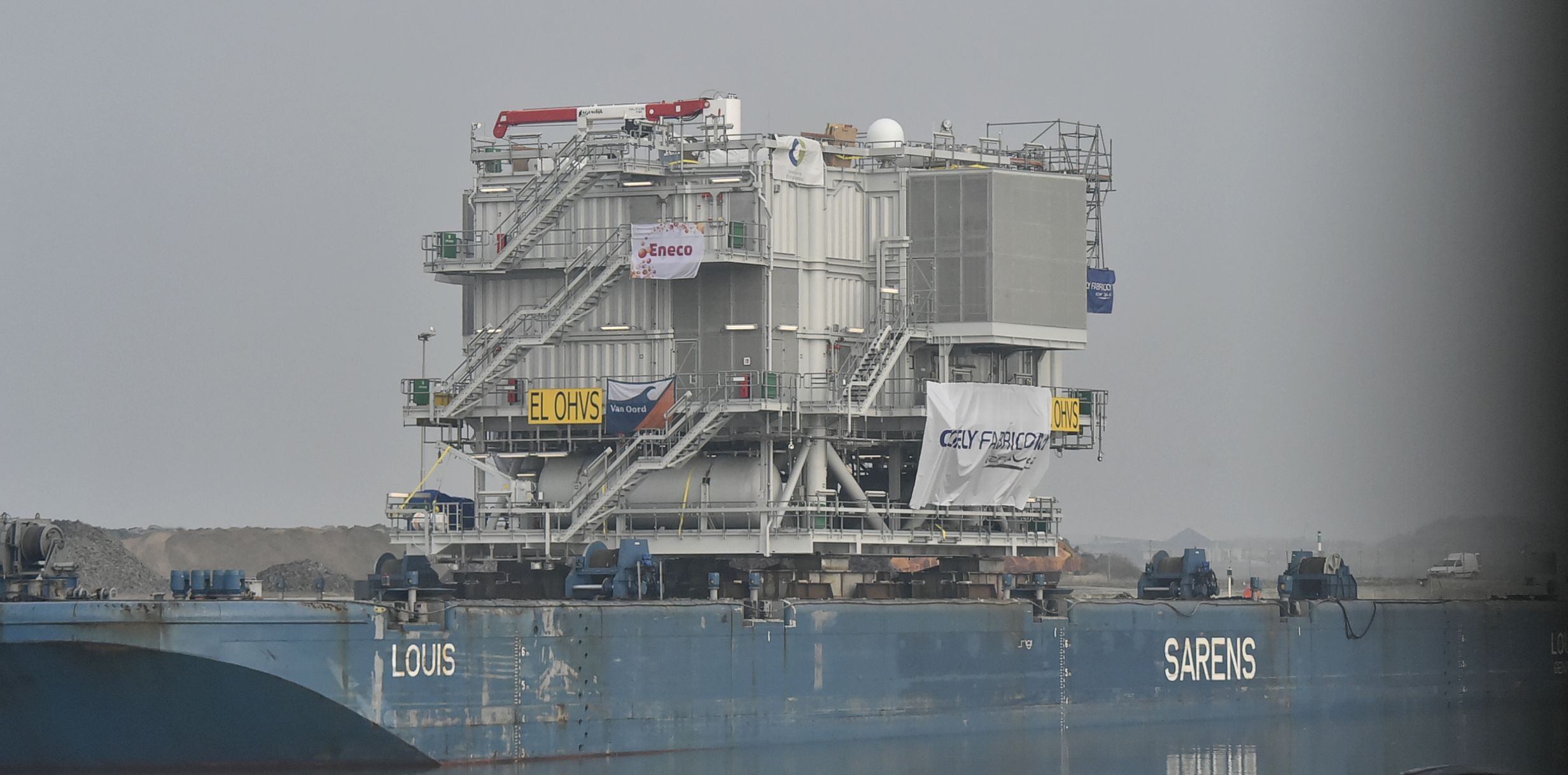 Bij een windmolenpark op zee horen niet alleen enorme windmolens. Ook de randapparatuur mag er wezen. Het transformatorstation bijvoorbeeld. 900 Ton zwaar en vier verdiepingen hoog. Het hoogspanningsstation werd de afgelopen maanden opgebouwd in het Belgische Hoboken bij Antwerpen.