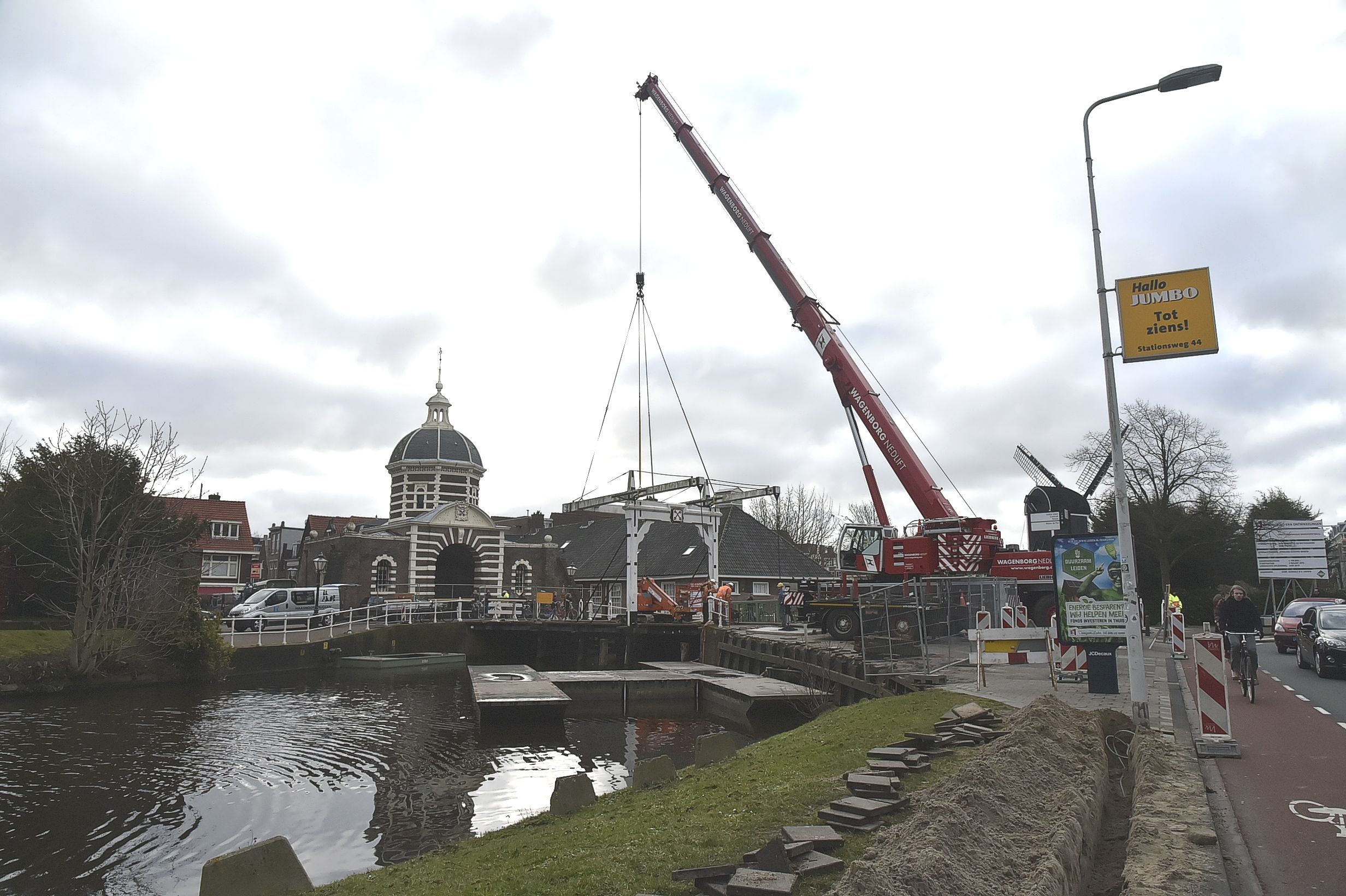 Autoverkeer wordt in de tussentijd omgeleid via de Stationsweg. Voetgangers en (brom-)fietsers kunnen nog wel de singel oversteken bij de Morspoort: voor hen is een tijdelijke noodbrug aangelegd.