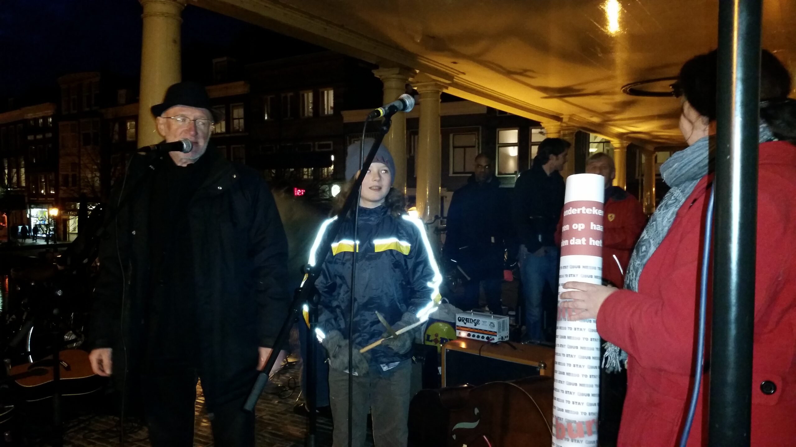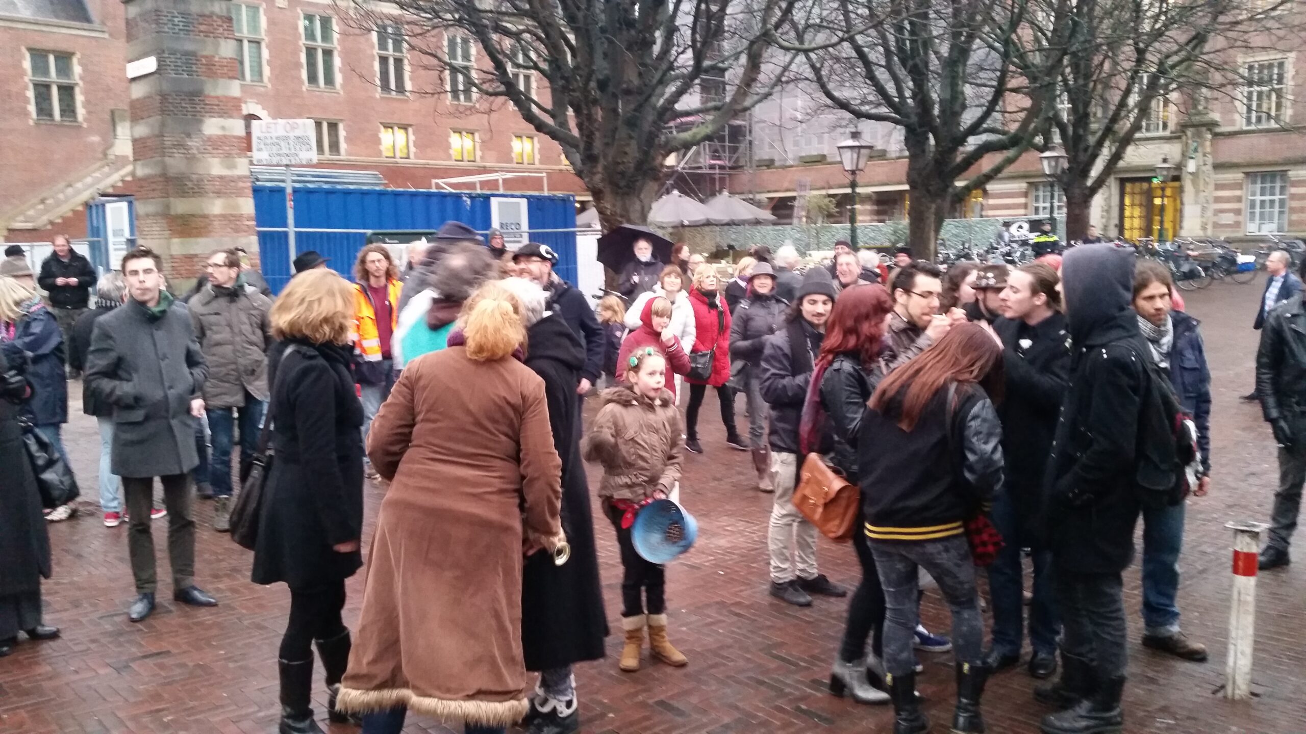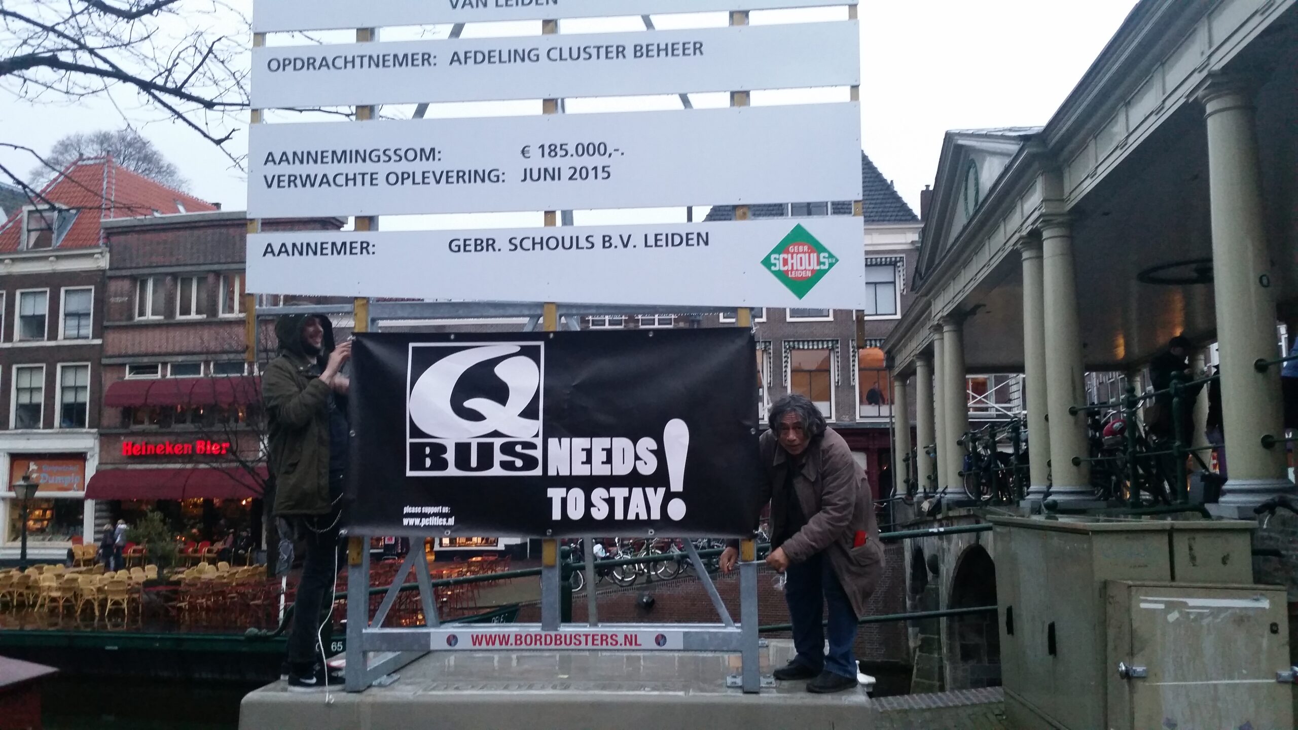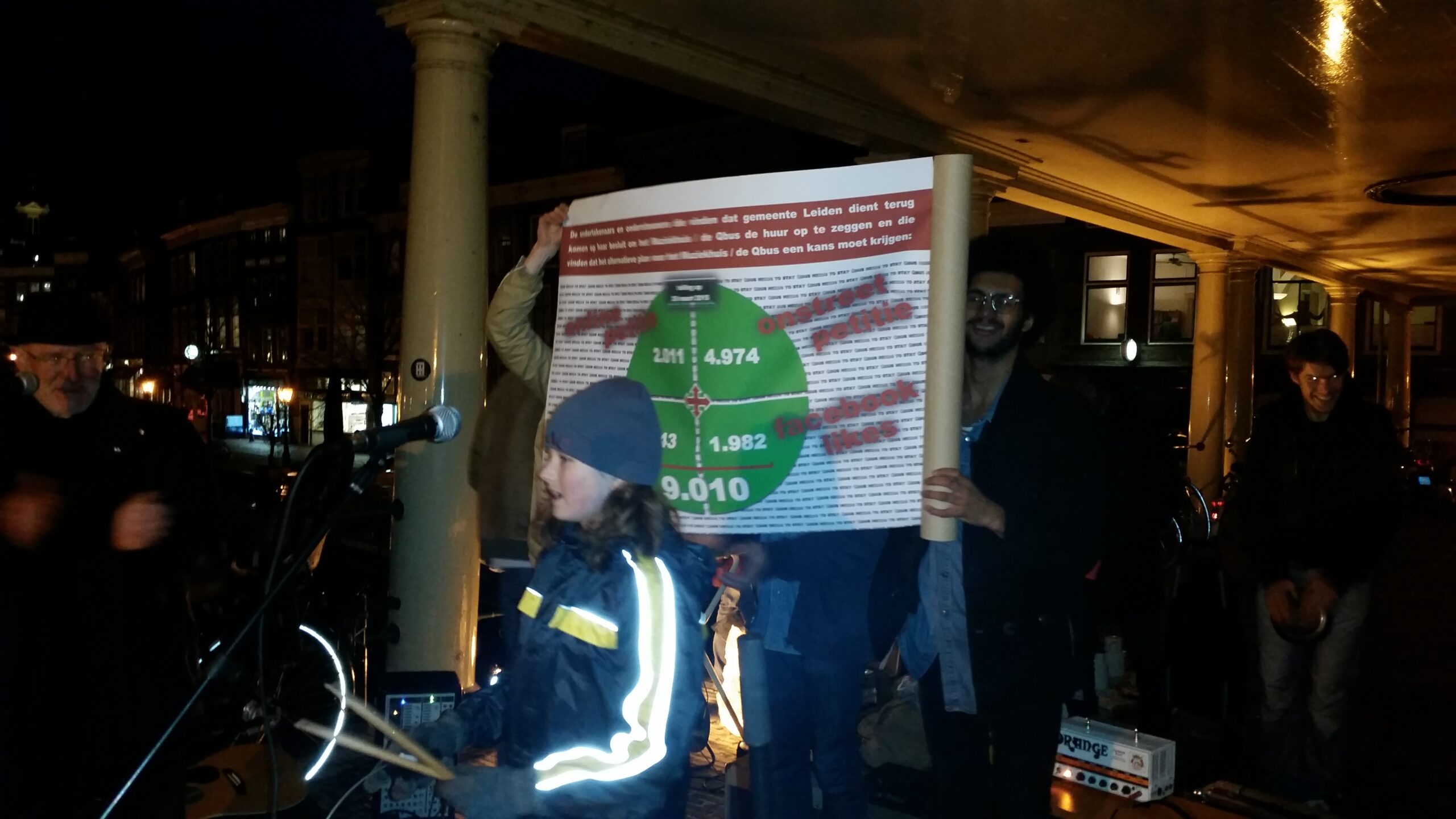 Reportage manifestatie ‘Qbus needs to stay’ voor het Leidse stadhuis (Door: Chris de Waard).