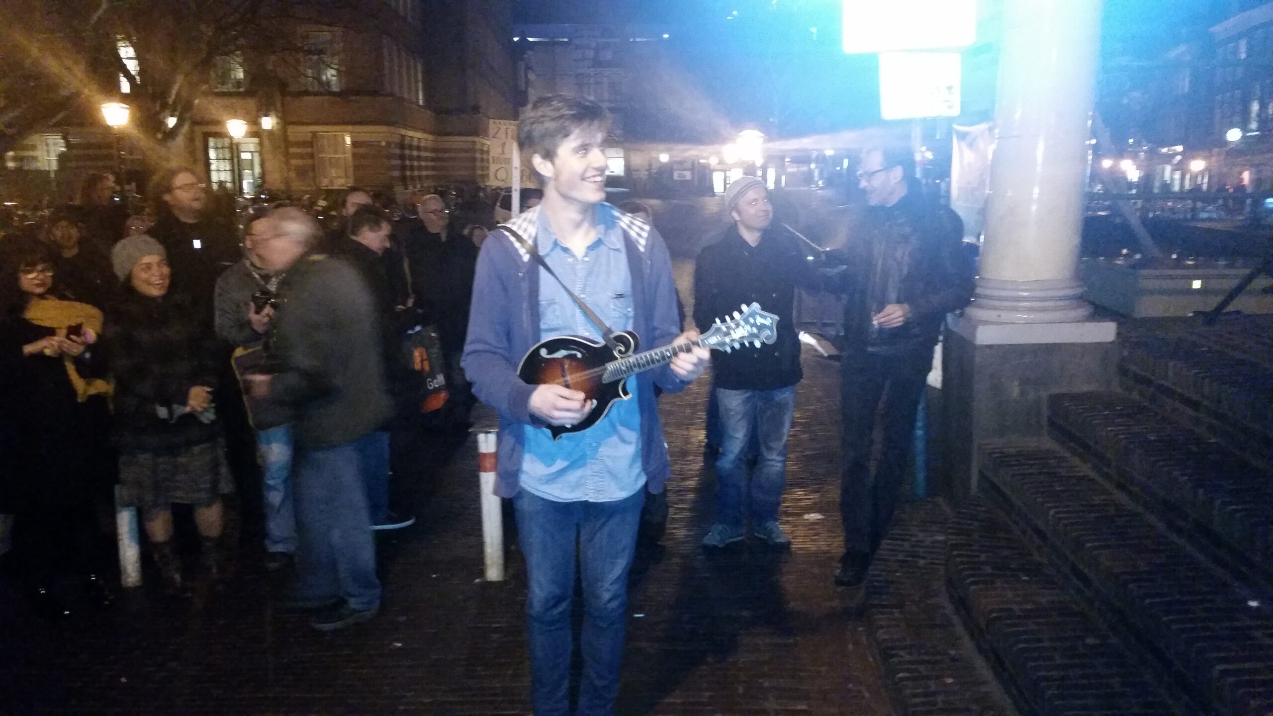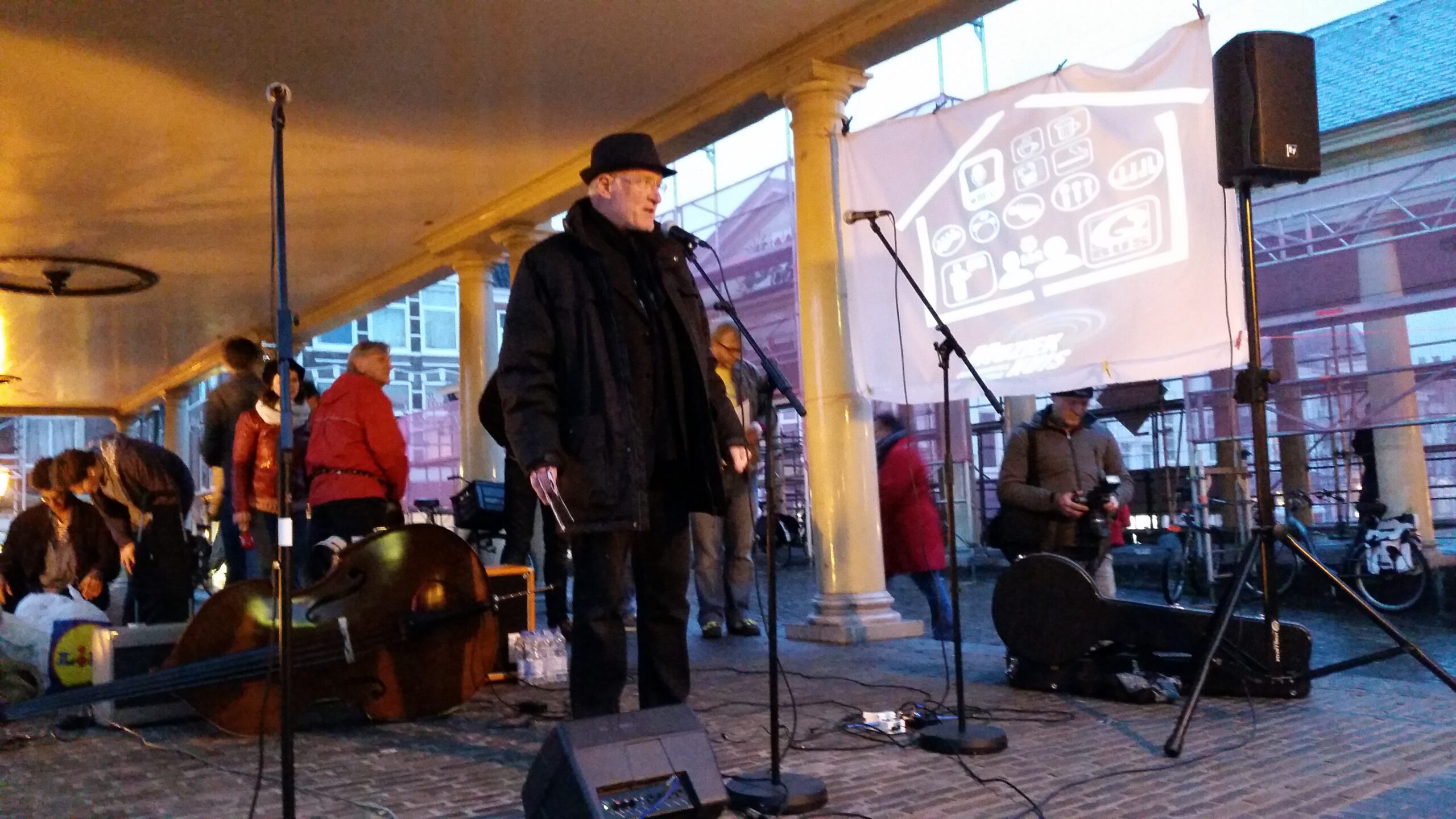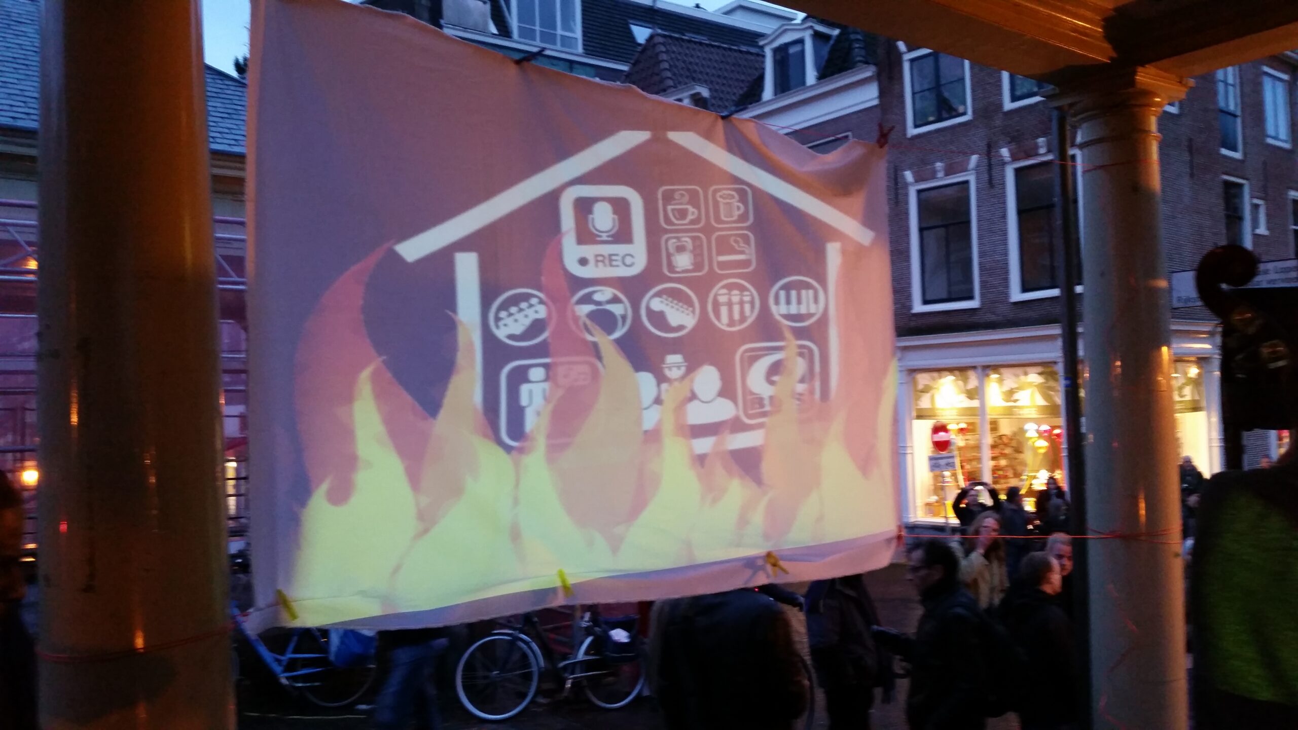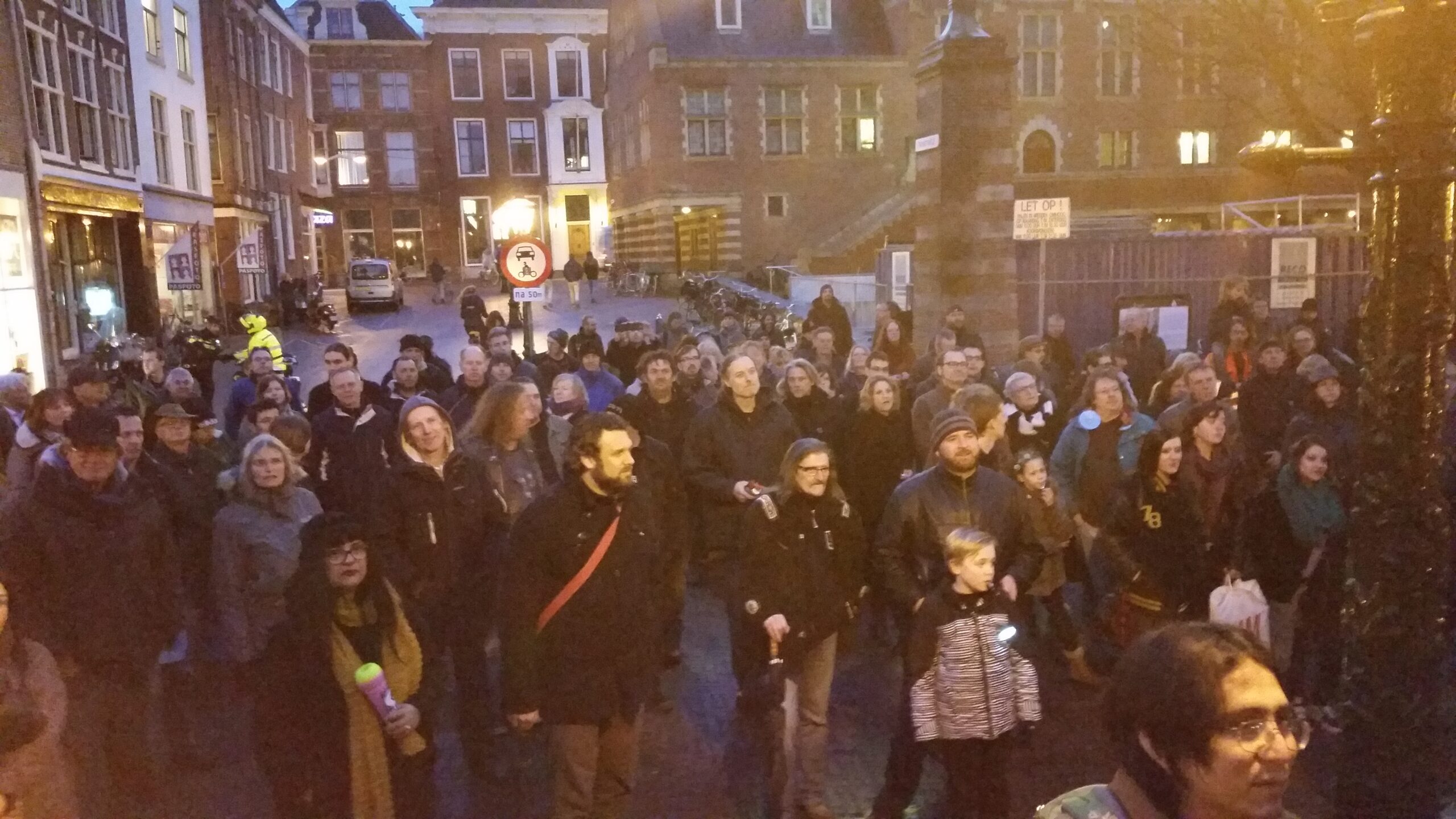 Reportage manifestatie ‘Qbus needs to stay’ voor het Leidse stadhuis (Door: Chris de Waard).
