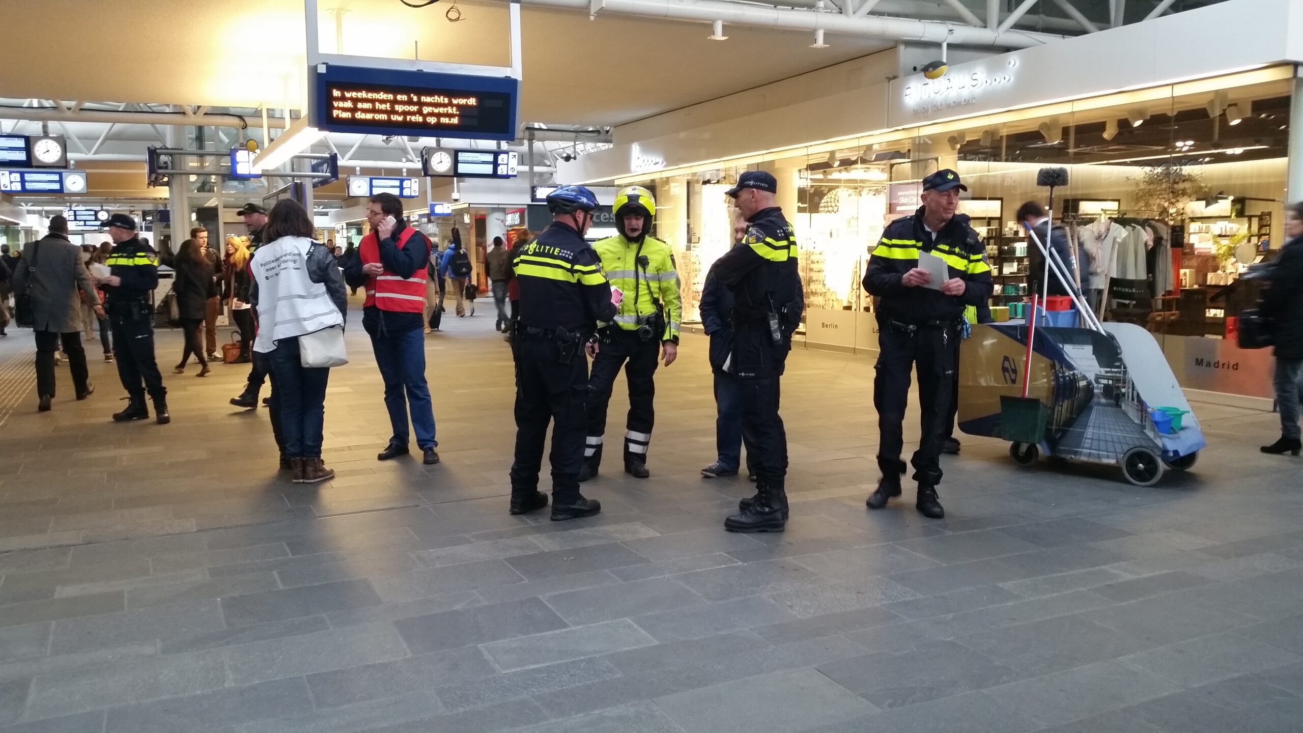 Er werd dit keer voor het station gekozen om ook de collega’s van de NS een hart onder de riem te steken. NS-personeel was de afgelopen periode regelmatig doelwit van scheldpartijen en zelfs mishandeling. Met de massale aanwezigheid van de agenten tijdens de ochtendspits sneed het mes dus aan twee kanten.