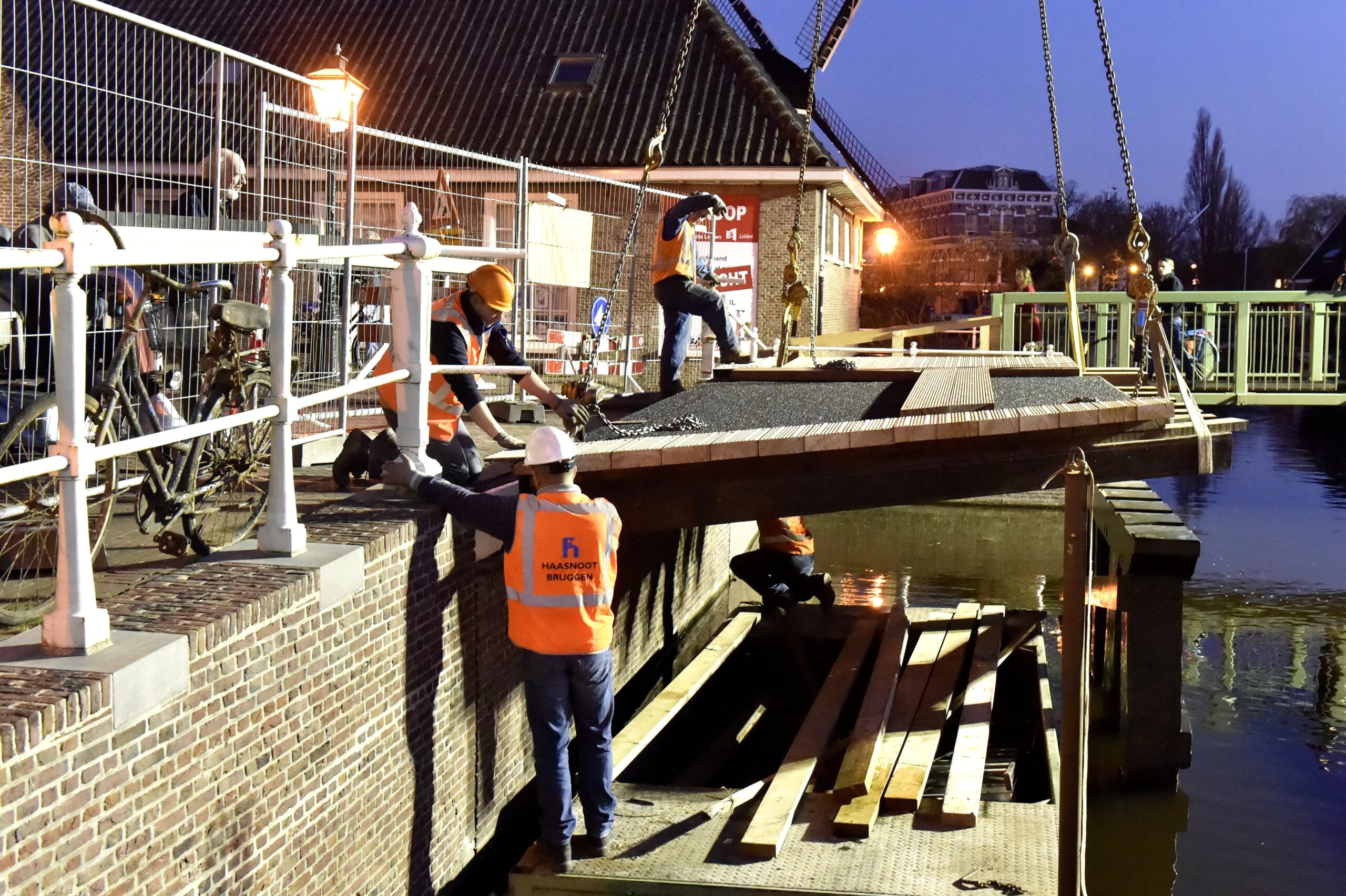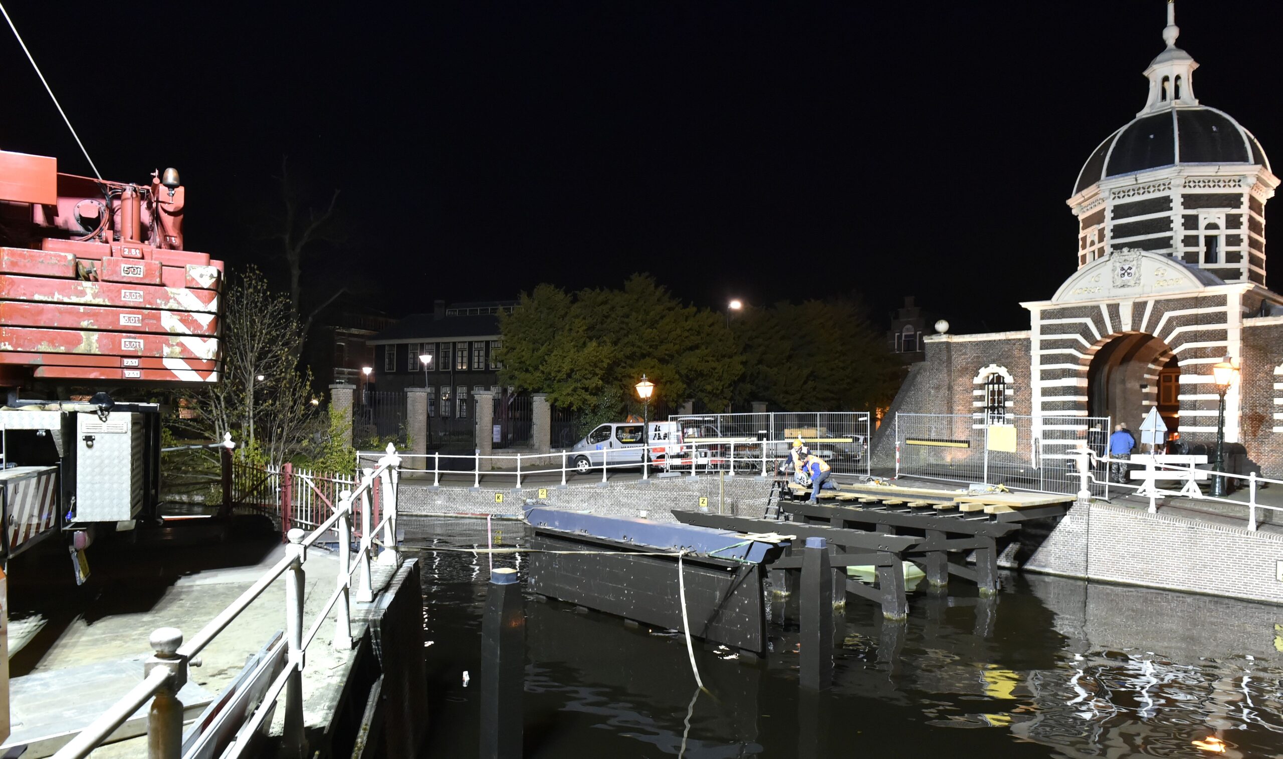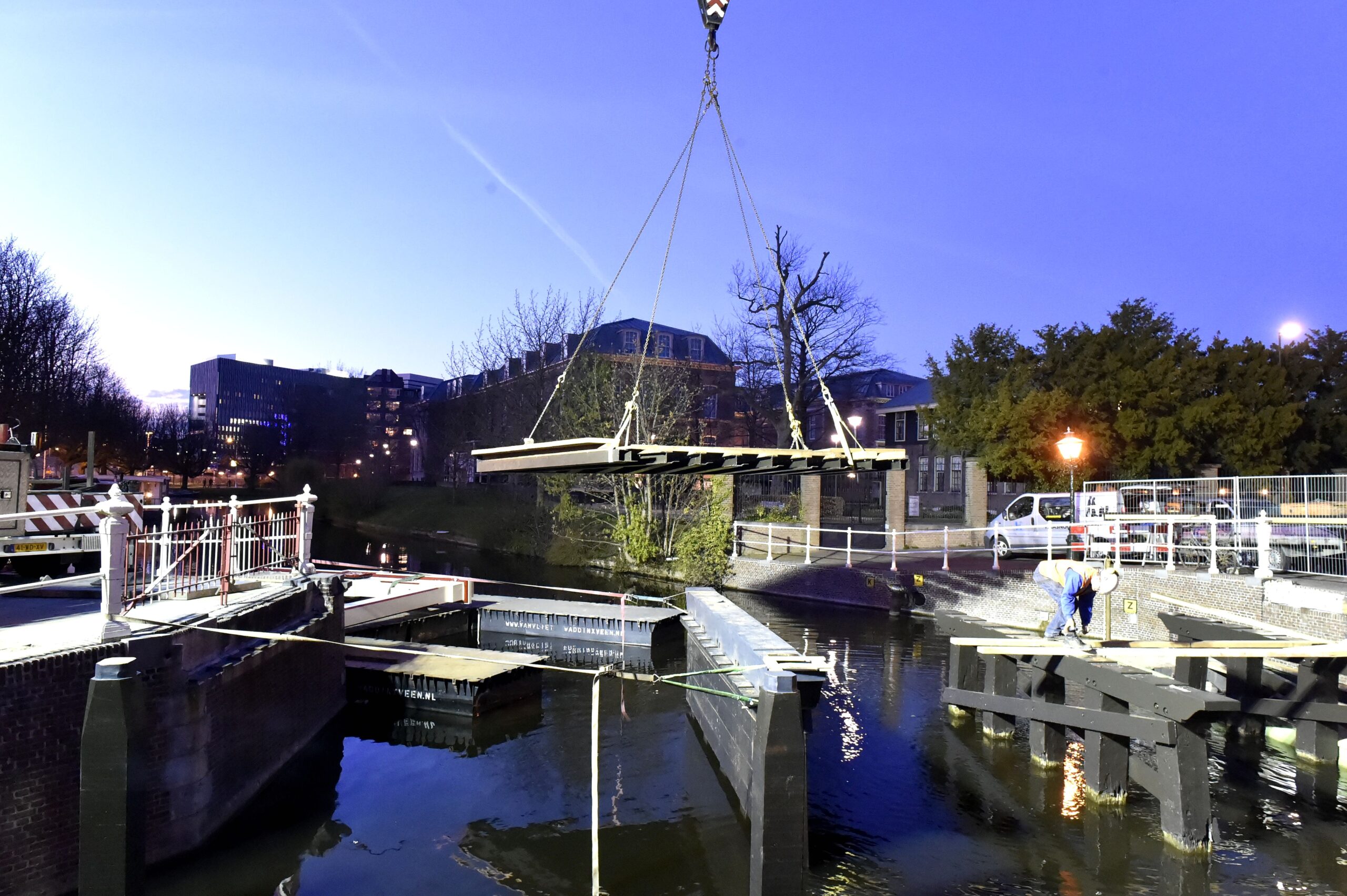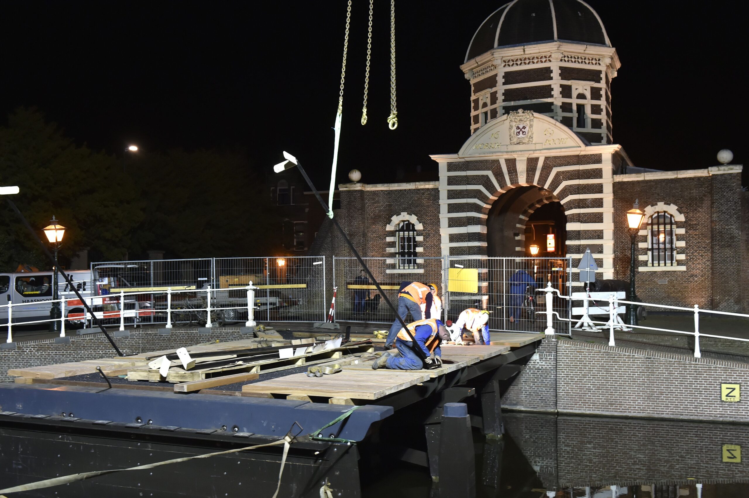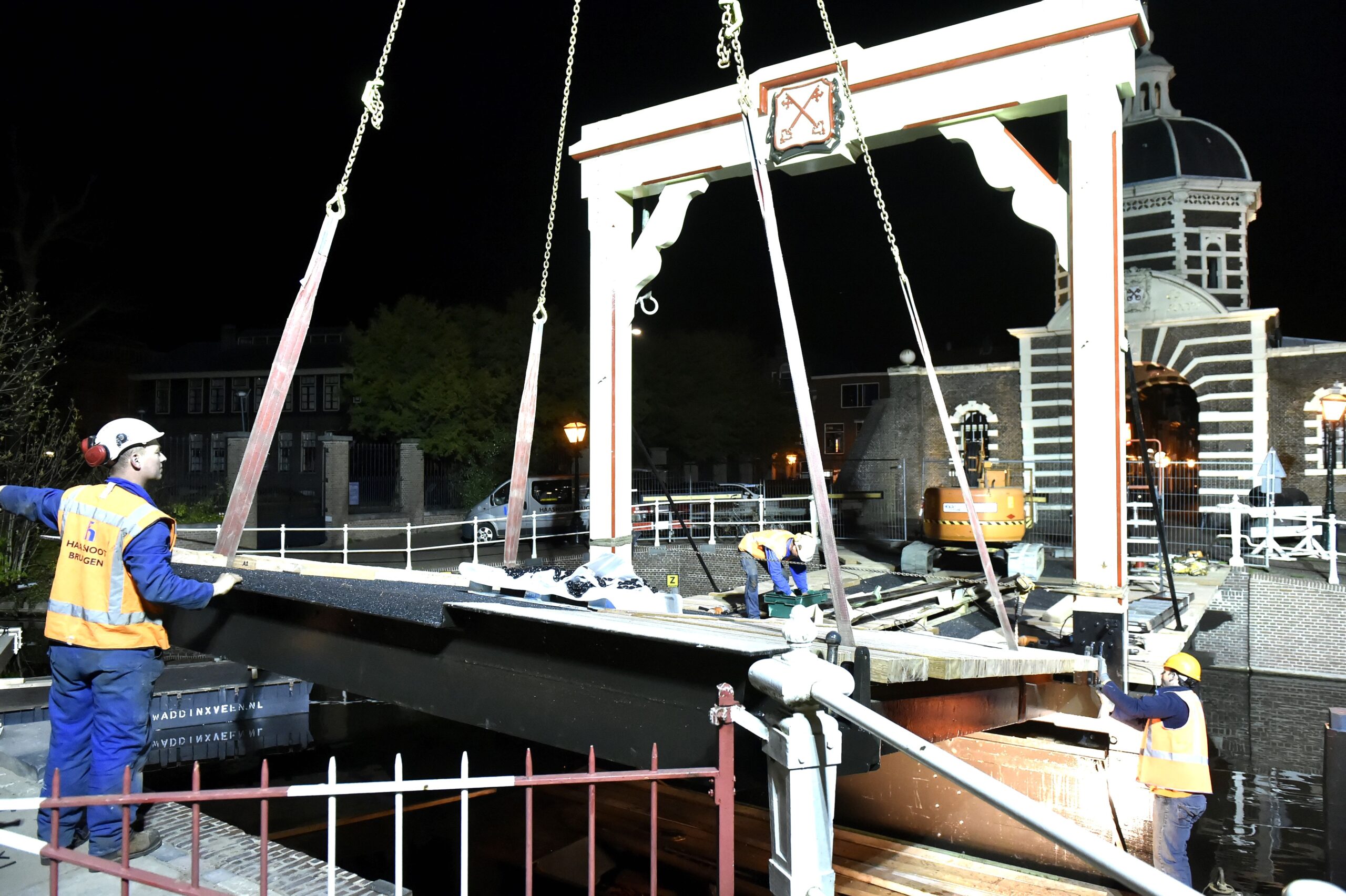 De Morspoortbrug is op dinsdagavond teruggeplaatst op zijn vertrouwde plekje. Het rijksmonument werd vorige maand gedemonteerd en weggehaald voor grondige herstelwerkzaamheden.