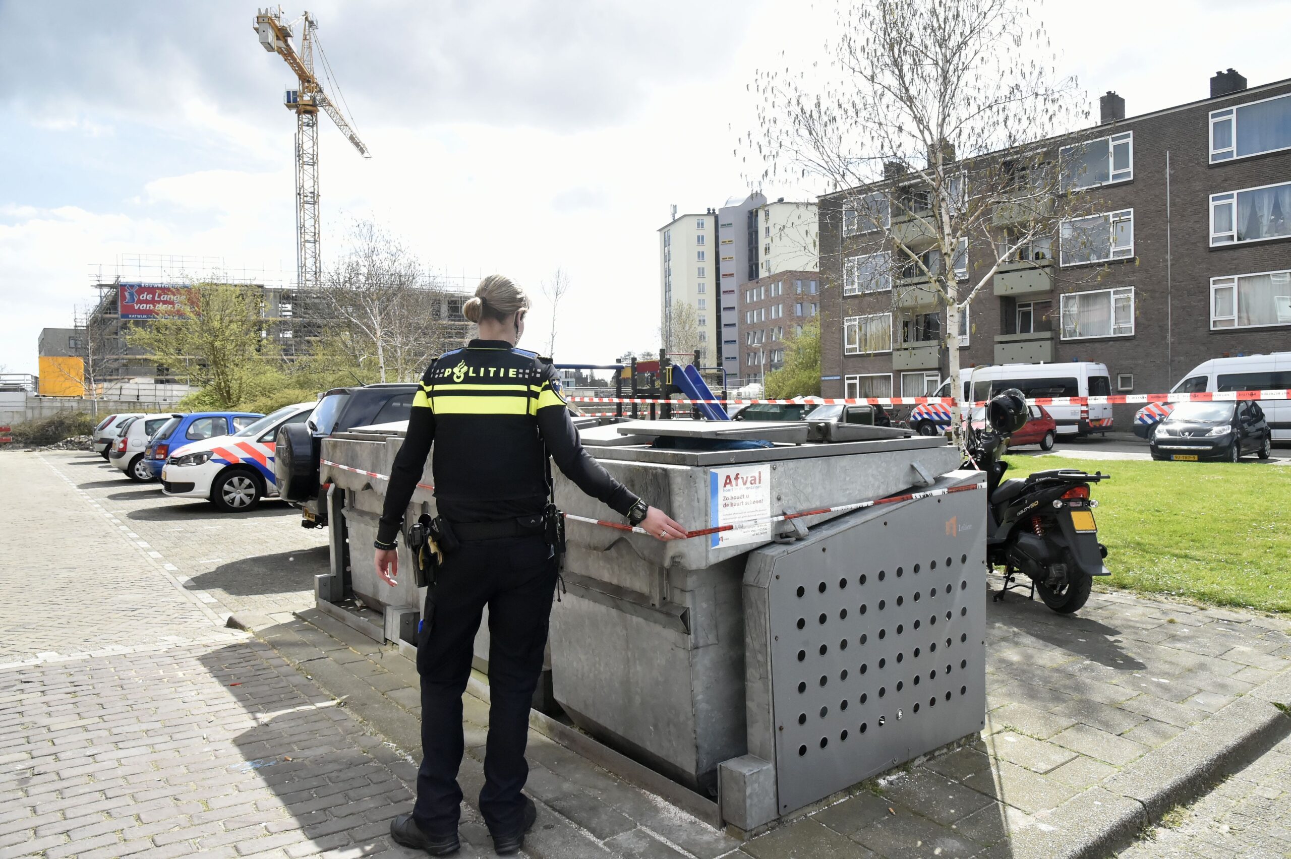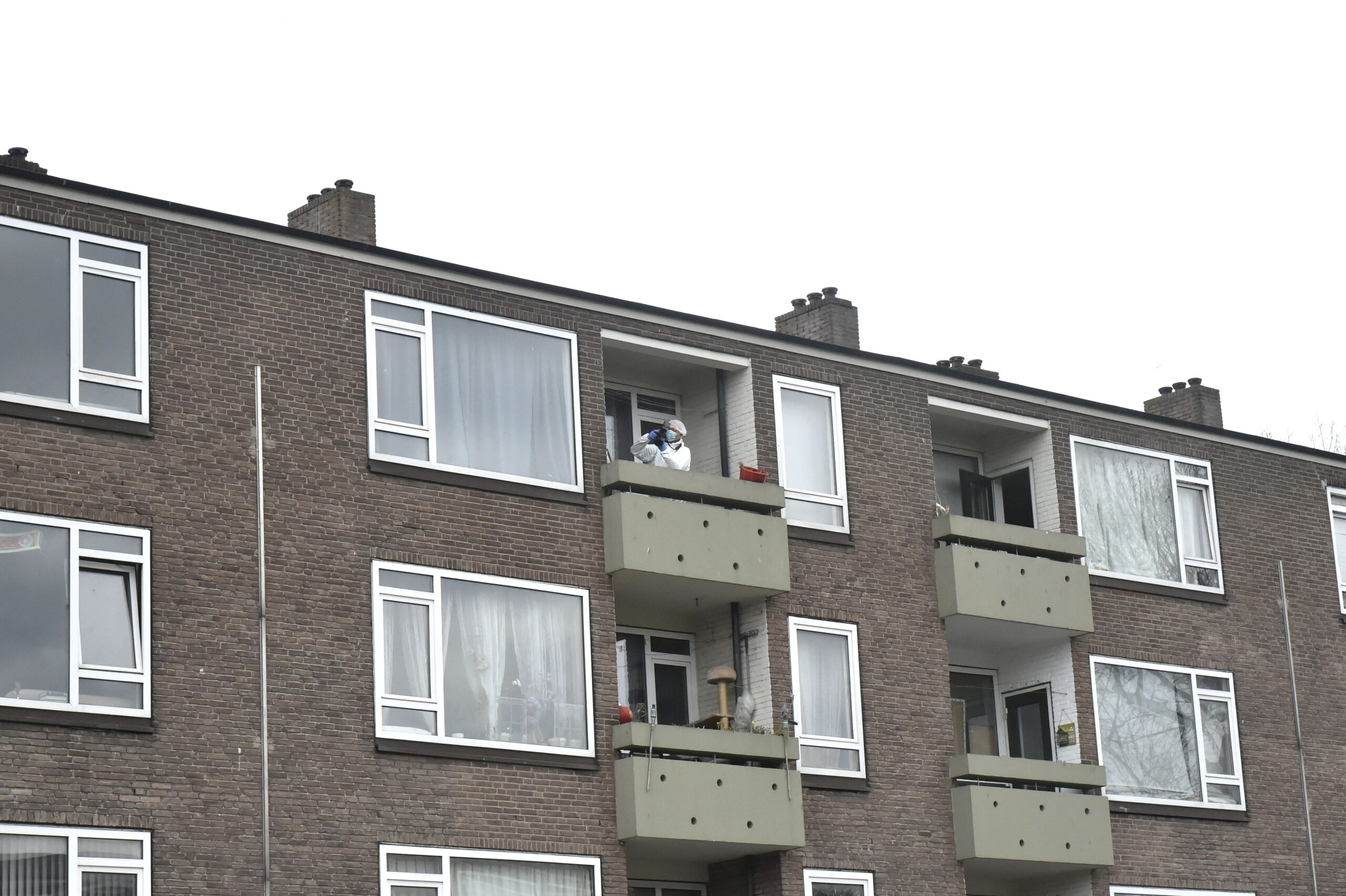 Pas tegen het einde van de middag werd het stoffelijk overschot van het dodelijke slachtoffer, een 24-jarige man uit Leiden, uit de woning gehaald.