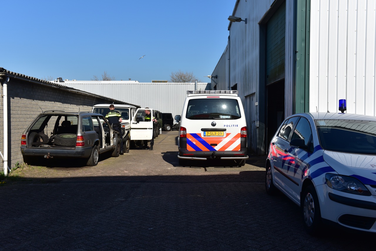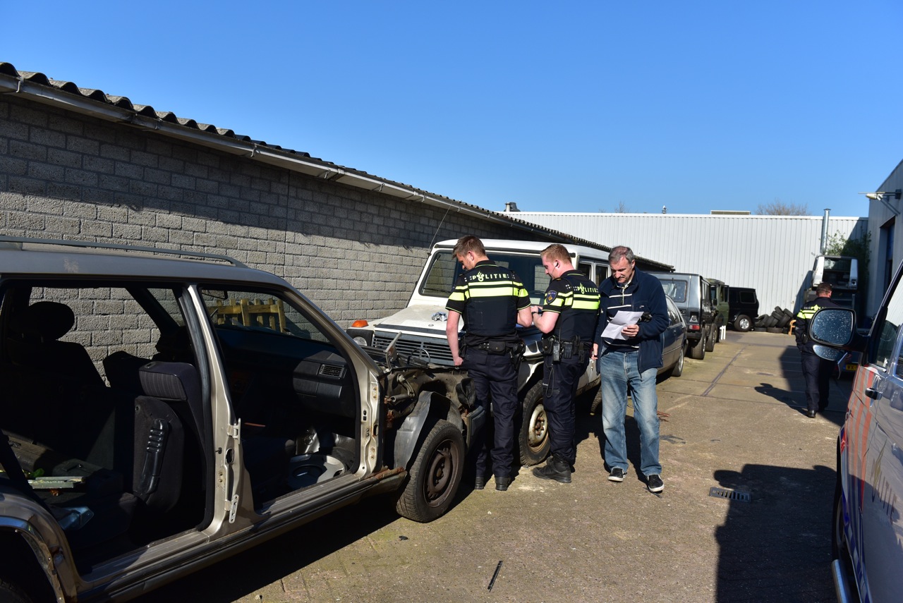 De politie heeft vanmiddag een inval gedaan in een garagebedrijf aan de Gerrit van der Veenstraat in Leiden Zuid-West. Politie en forensische opsporing deden onderzoek in en aan verschillende auto’s op het garageterrein.