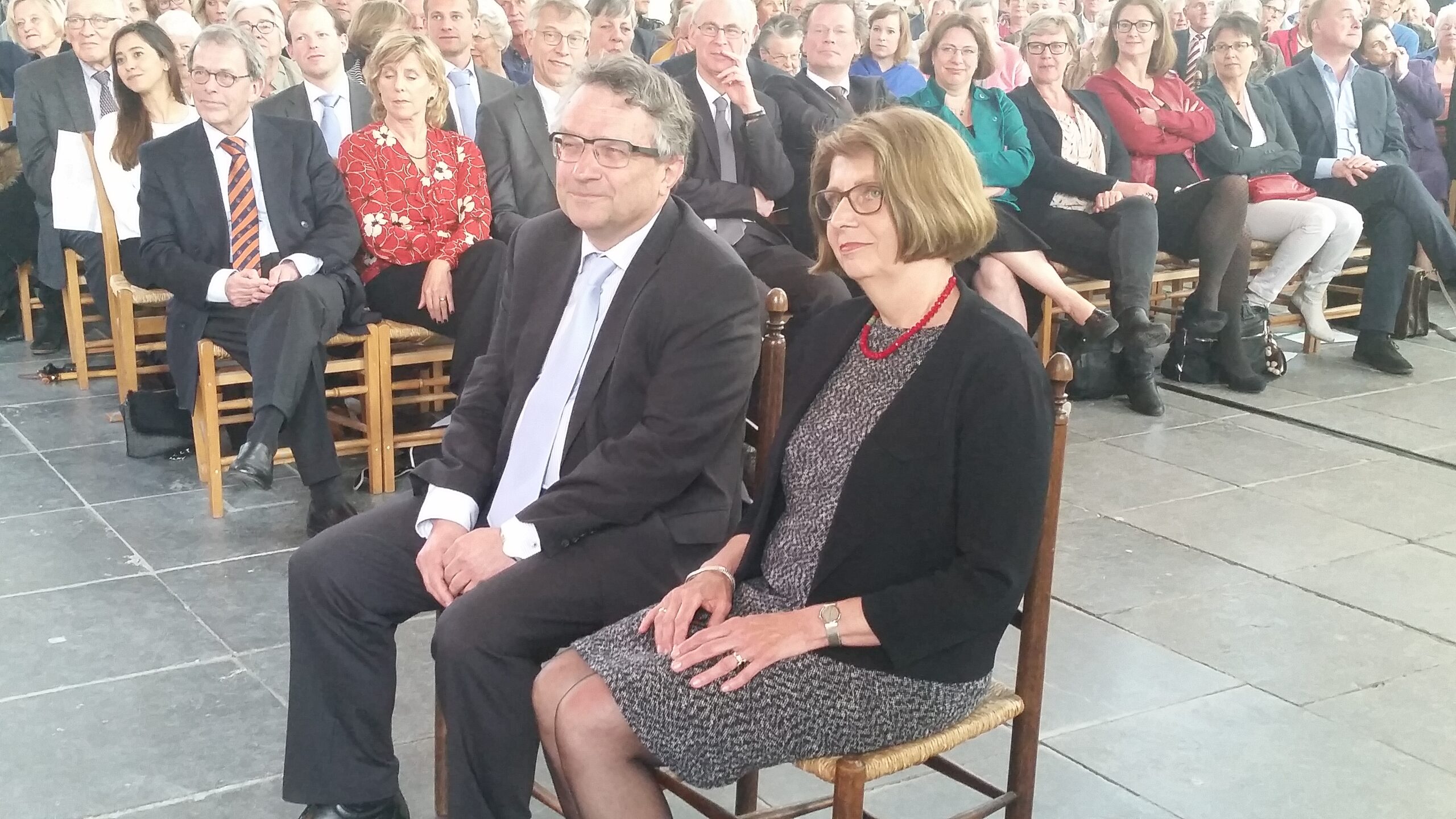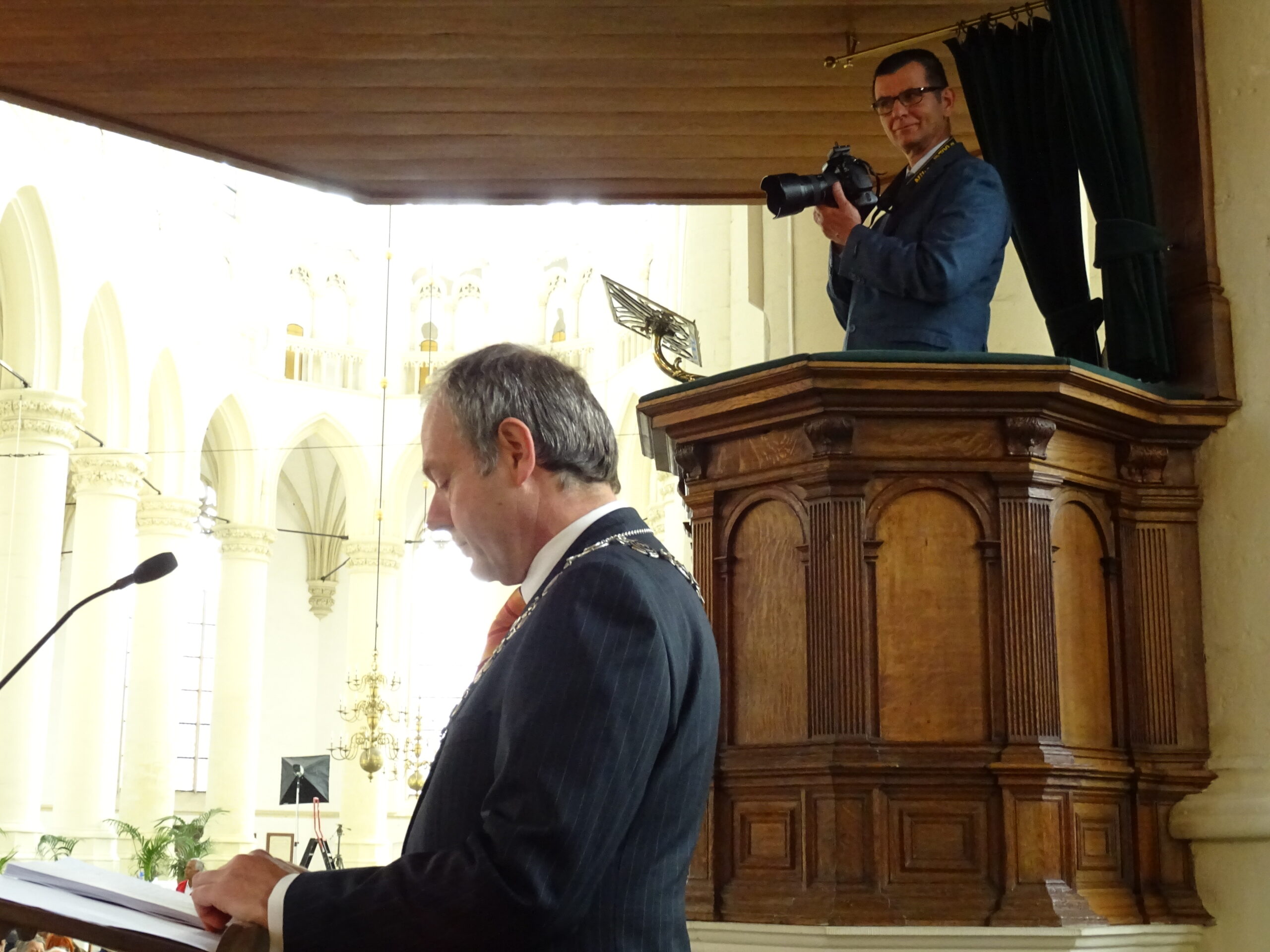 Chris de Waard sprak vanmorgen met burgemeester Lenferink en enkele gedecoreerden.