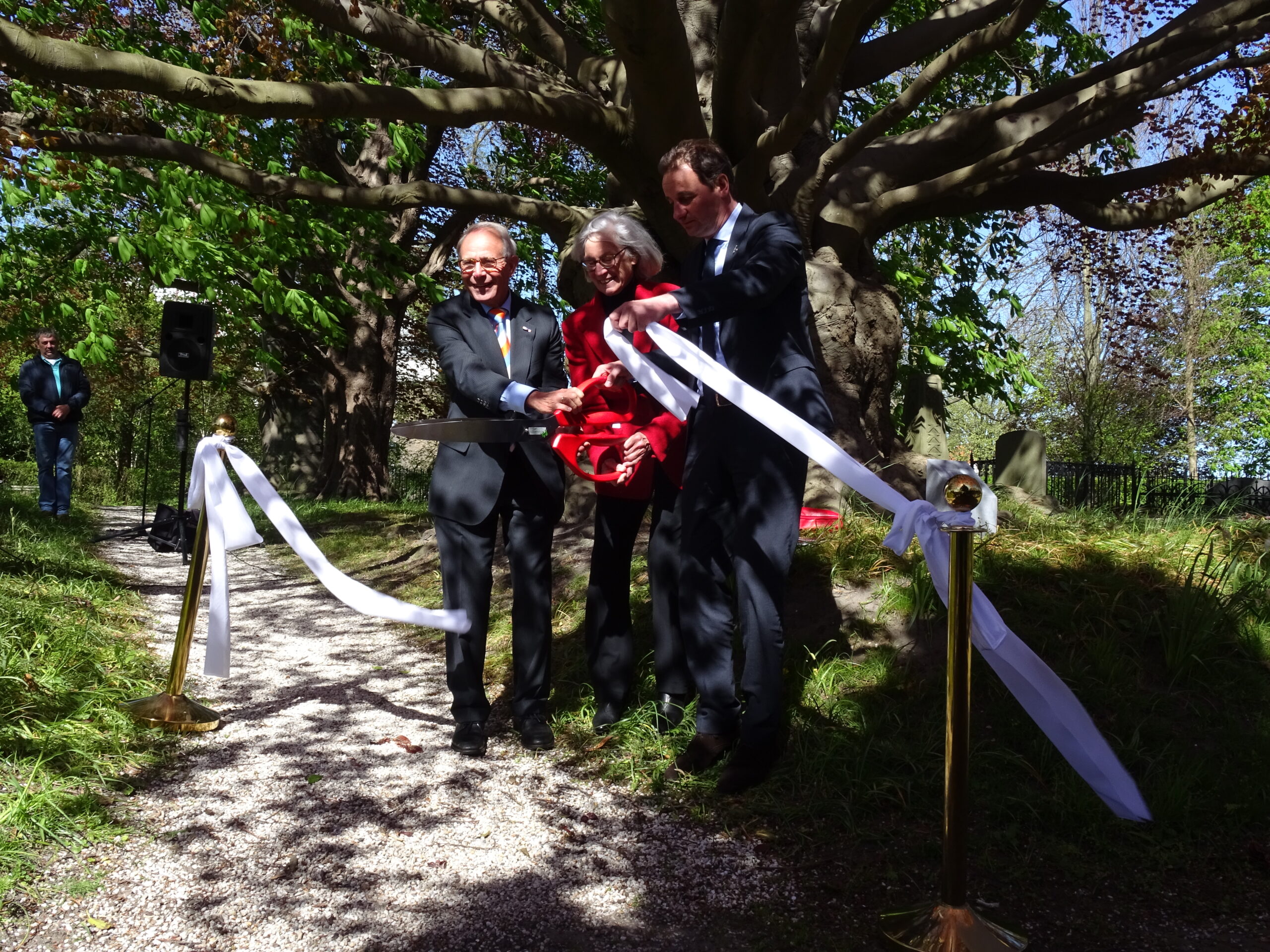 De officiële heropening werd uitgevoerd door wethouder Frank de Wit, Marijke van Dobben de Bruijn namens de provincie Zuid-Holland en Lodewijk Kallenberg, voorzitter van de Stichting tot instandhouding begraafplaats Groenesteeg. Het drietal knipte met een enorme schaar een wit lint door.