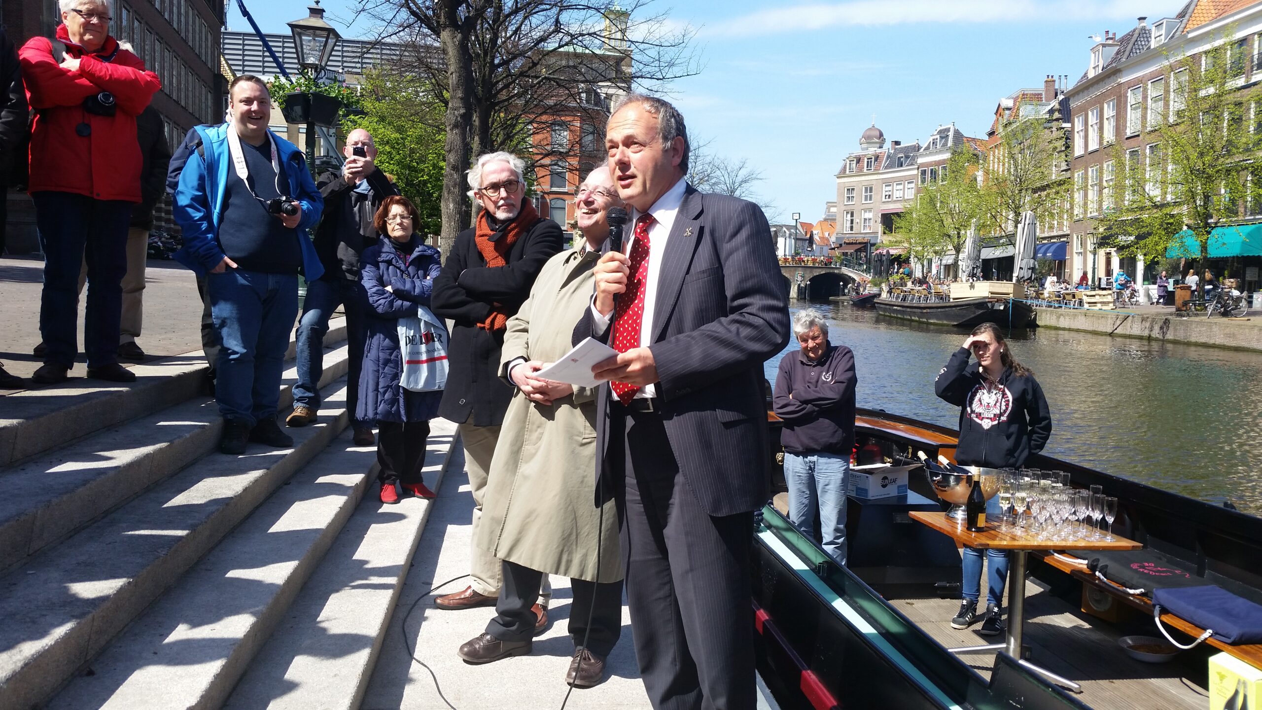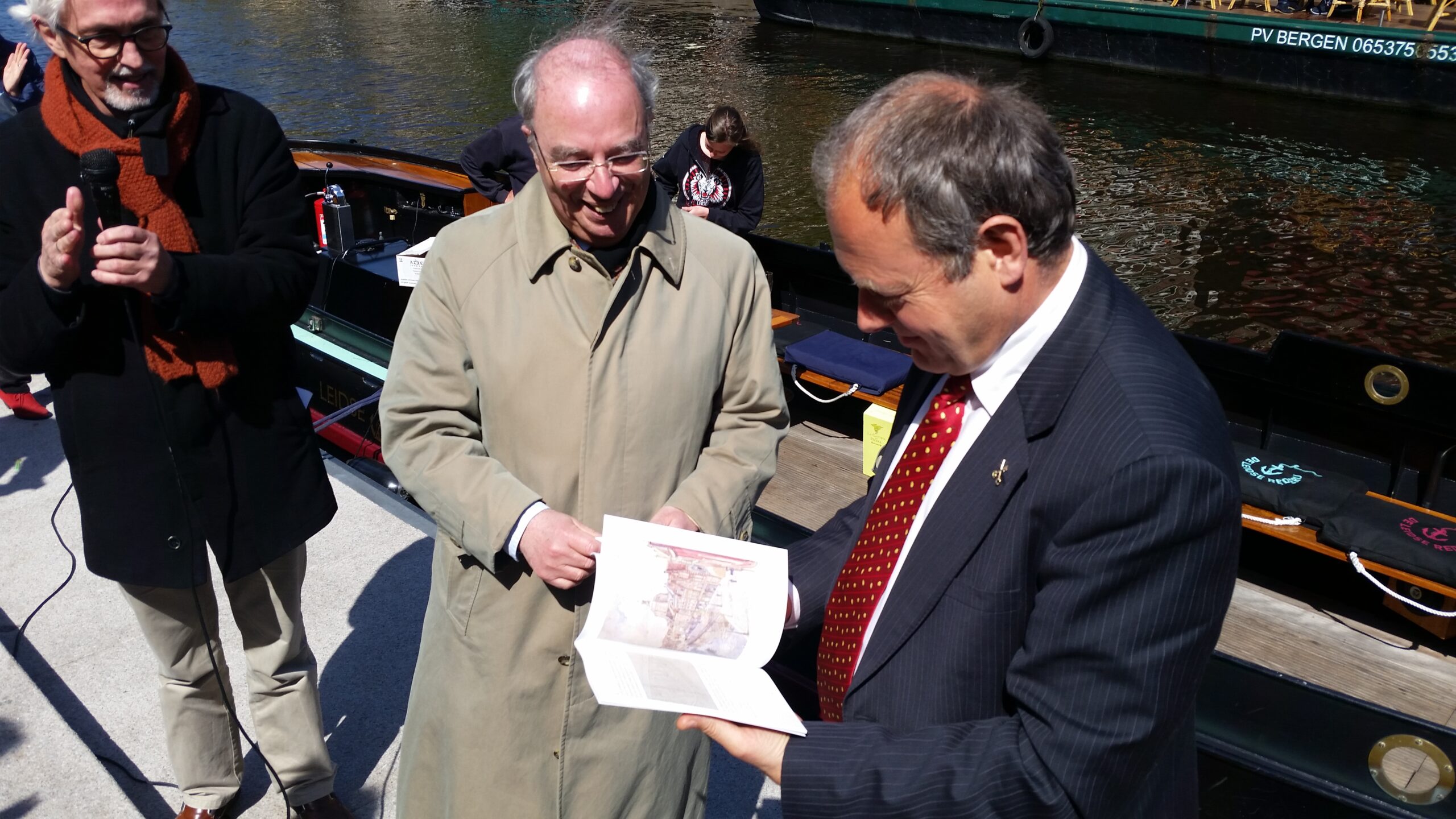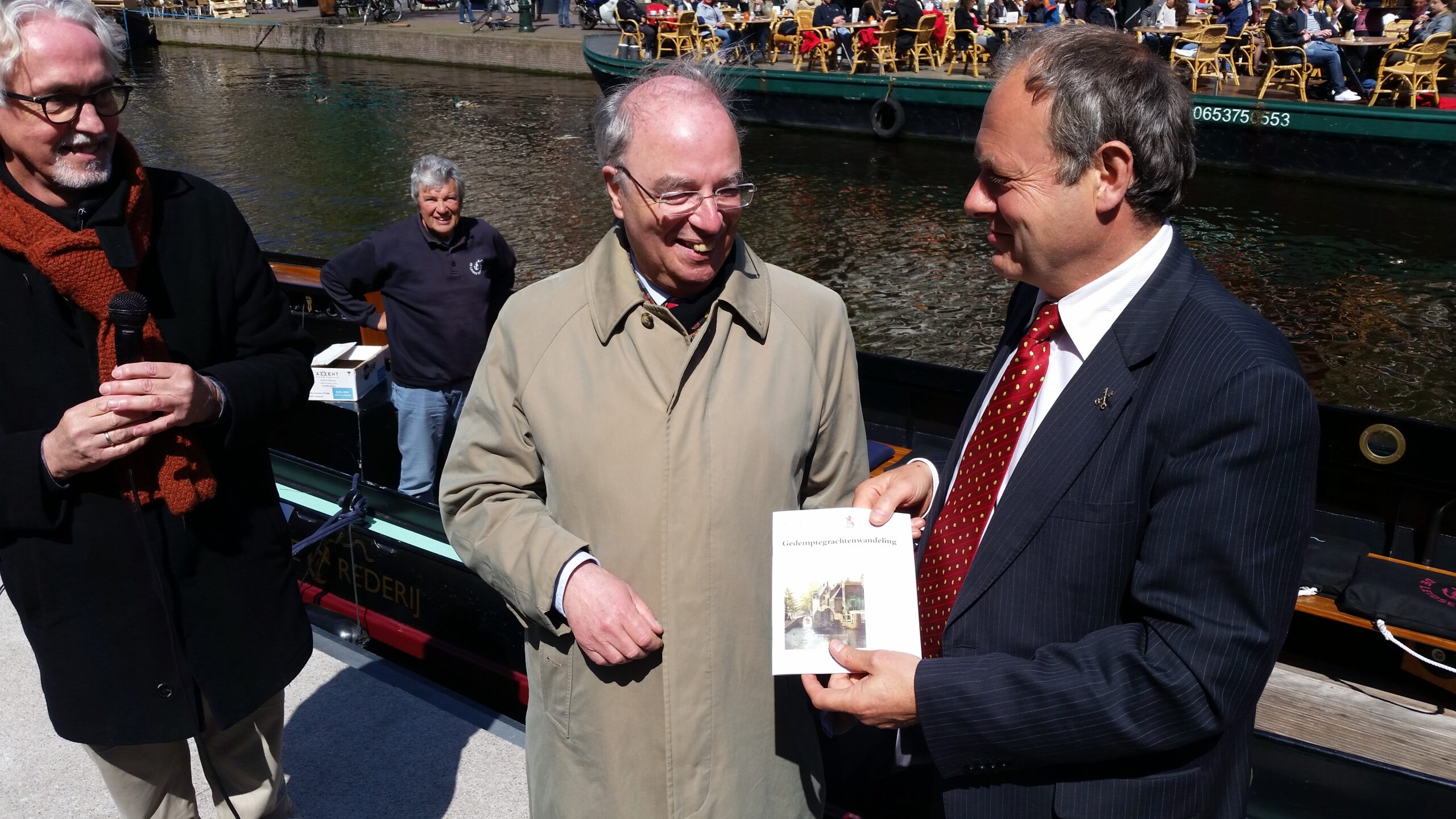 Ontdemp alle grachten die de afgelopen 600 jaar in Leiden zijn gedempt. Met die wens overhandigde het Waterambacht Leiden afgelopen vrijdag het eerste exemplaar van de ‘Gedemptegrachtenwandeling’ aan burgemeester Lenferink. “Als de gemeente nu begint met het opengraven van de laatste gracht die in Leiden is gedempt, de Lange Mare, en dan in de 600 jaar erna de rest,” zo dagdroomde Jan Wieles van het Waterambacht. Lenferink wilde het best toezeggen: “Over 600 jaar zijn we klaar, maar ik weet niet wanneer we beginnen,” zei de burgemeester met een knipoog.