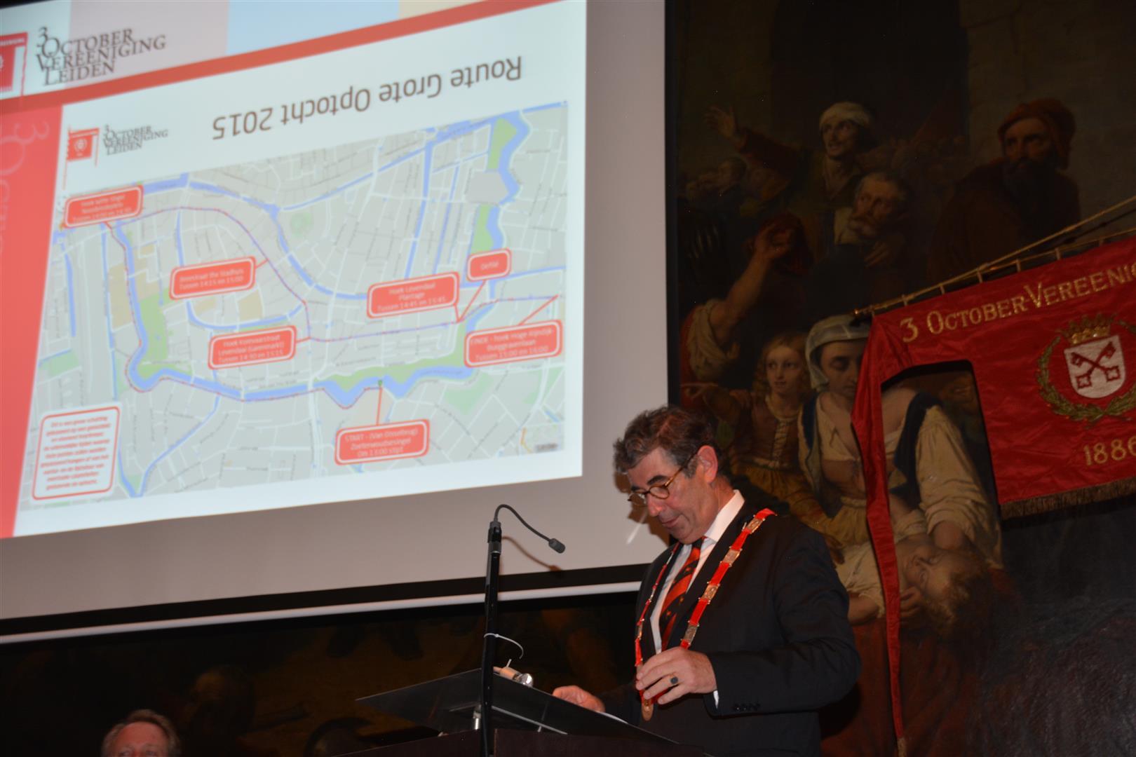 Voorzitter Micheil Zonnevylle van de 3 October Vereeniging licht de wijzigingen toe.