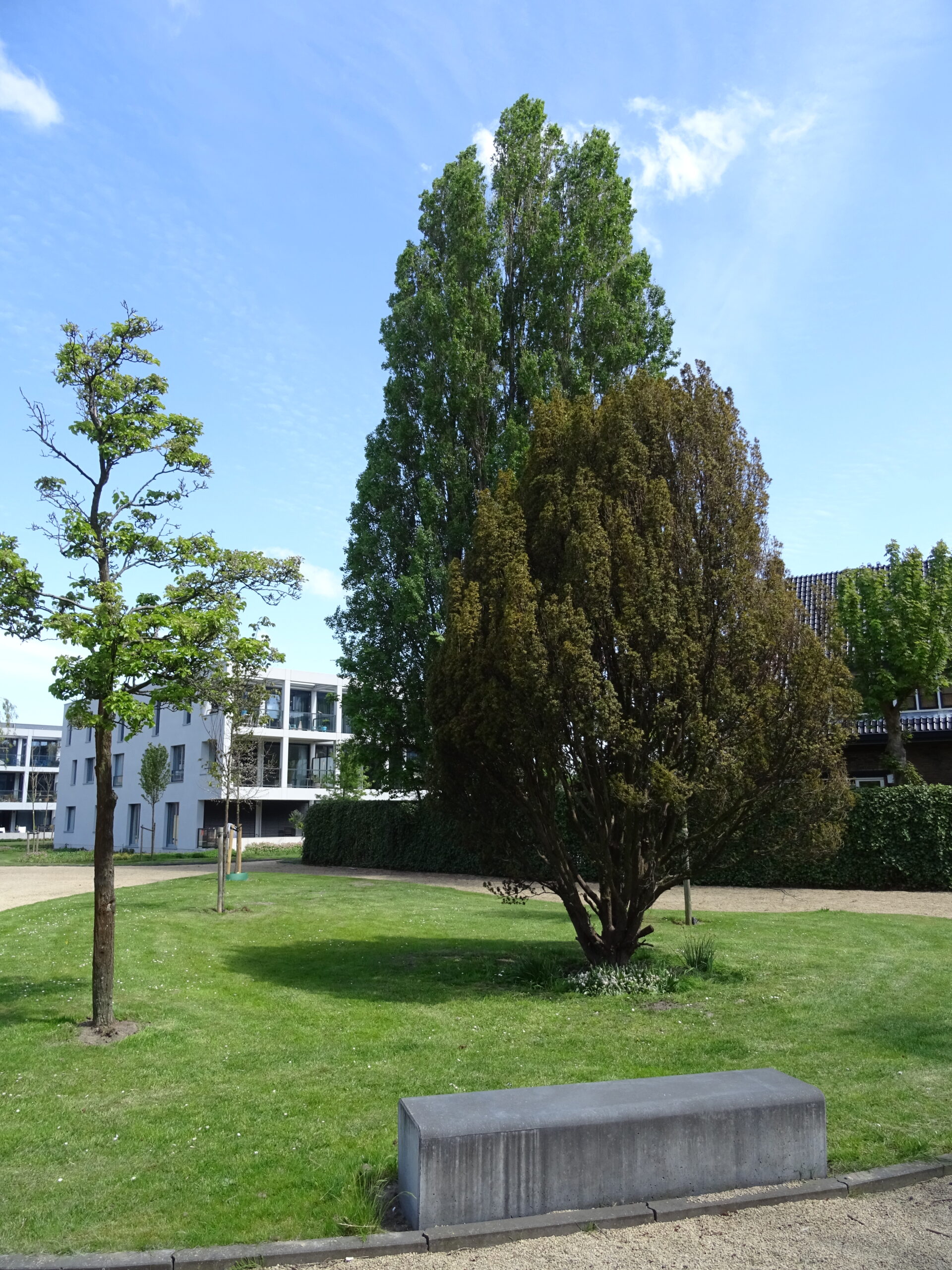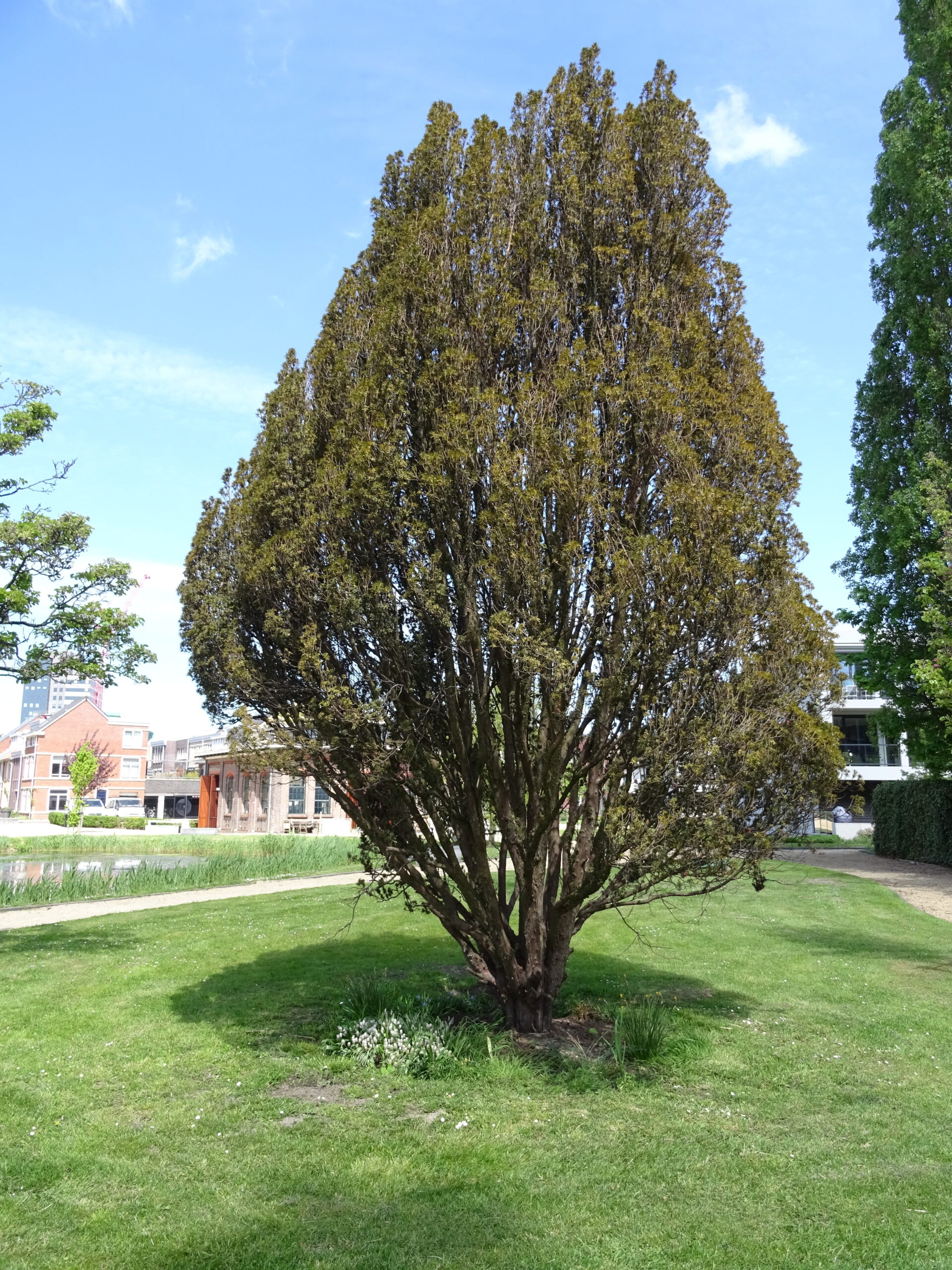 In het Marepark bij Nieuw Leyden kreeg de taxus een nieuwe plek. Daar staat hij nu nog steeds. Met steeds bruiner wordende naalden. Dat wel. Ruim een jaar nadat de boom is verplaatst, lijkt het alsnog mis te gaan. Geert Crielaard, destijds één van de initiatiefnemers van de verplaatsing, ziet het met lede ogen aan. “Het gaat inderdaad niet goed. Titus maakt geen nieuwe naalden aan. We geven hem nu extra water en voedingsstoffen en hopen er dan maar het beste van. als je een takje afbreekt zie je wel dat er nog leven in zit.”