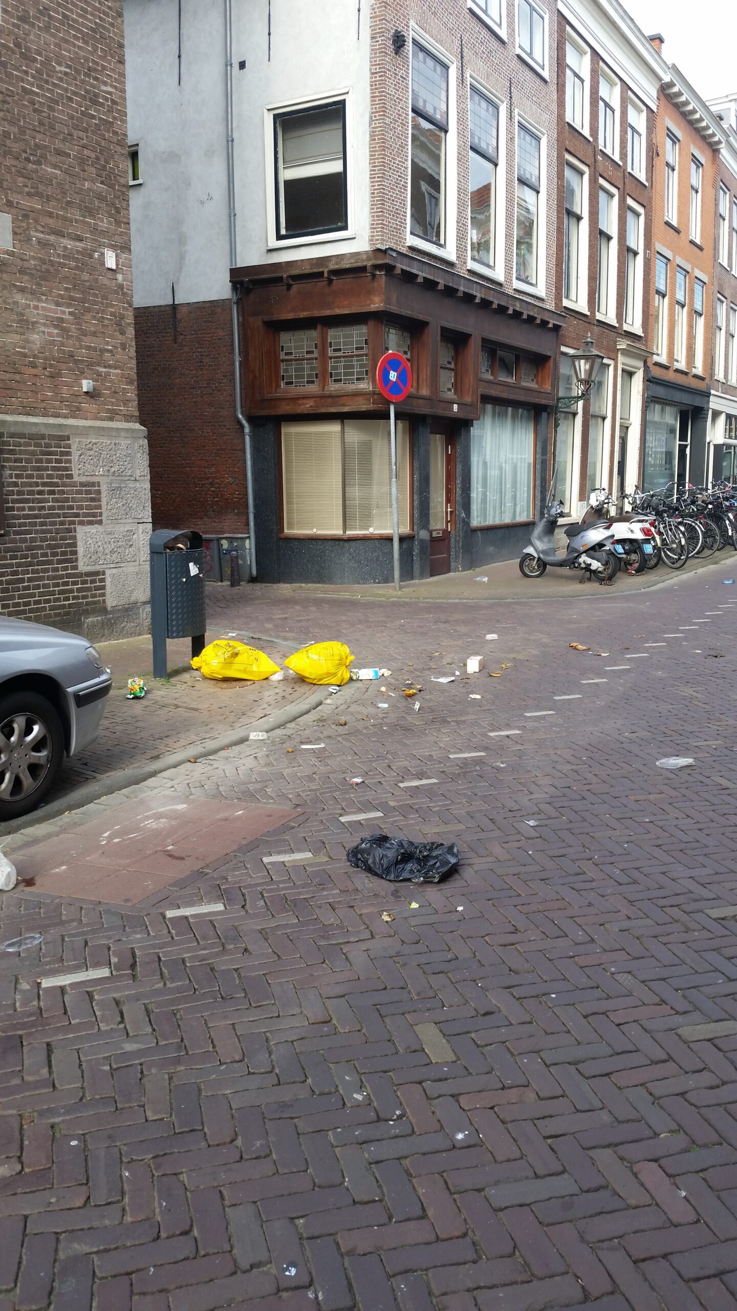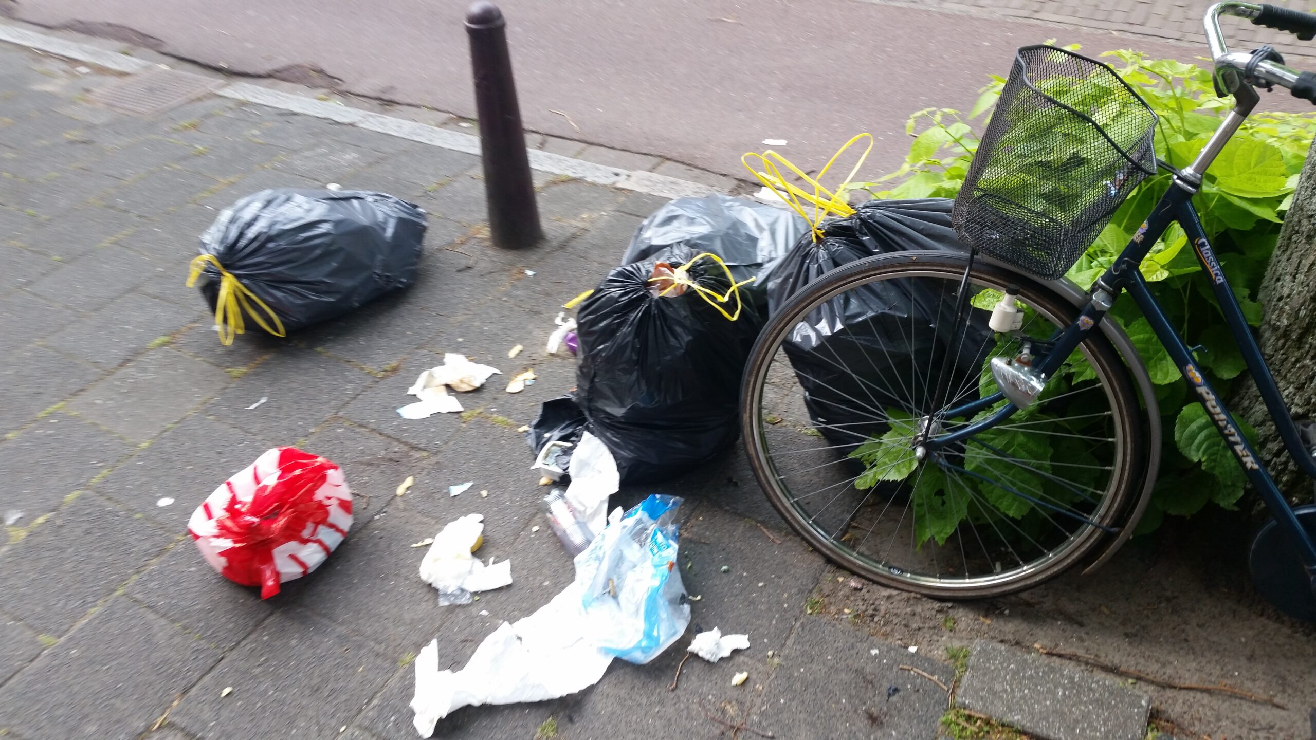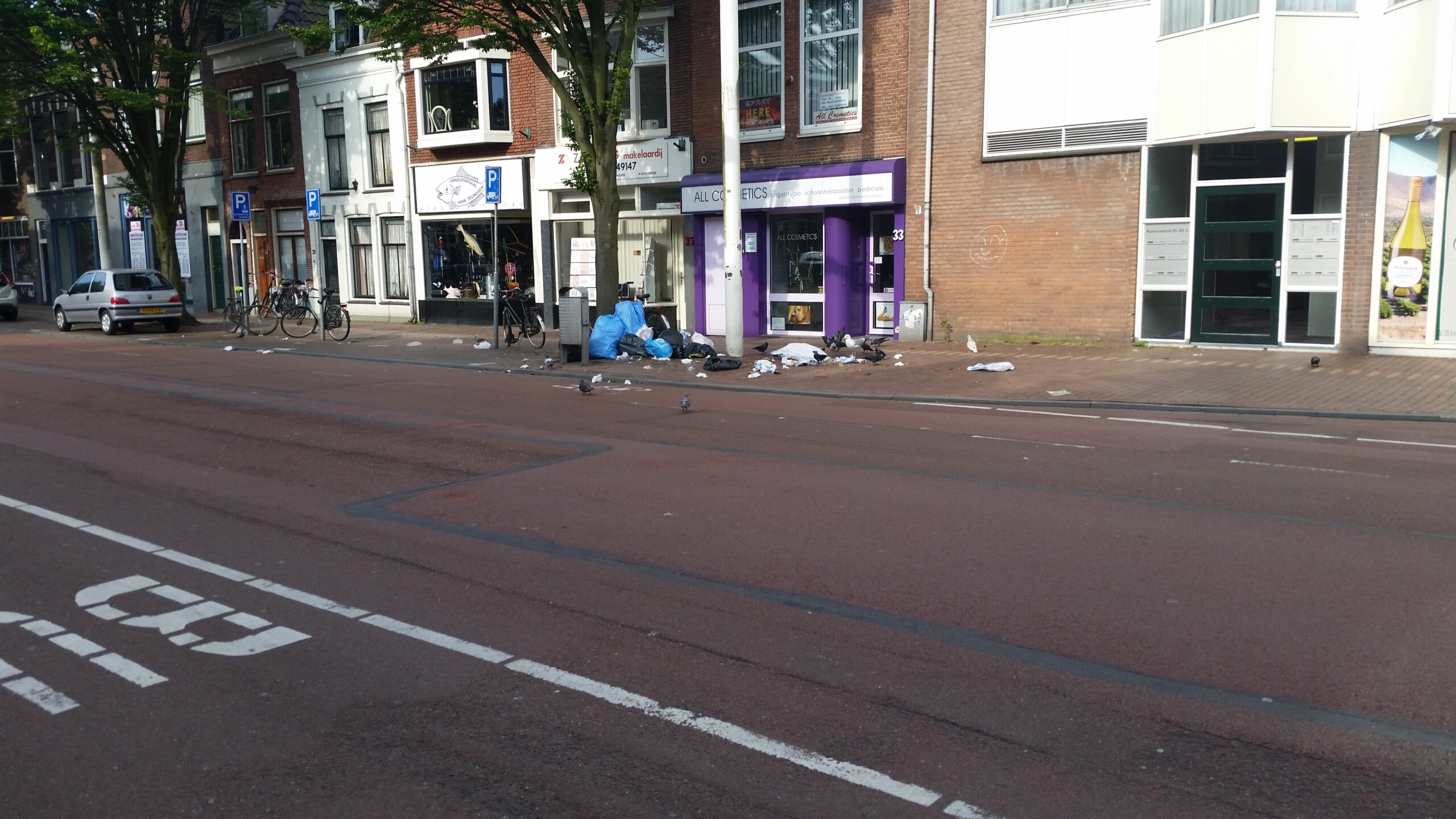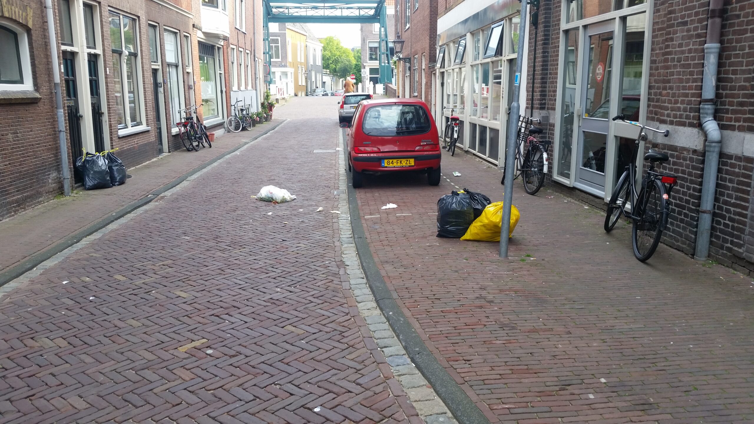 Het lijkt erop dat de problemen met de pasjes inderdaad voorbij zijn. Direct naast de ondergrondse containers kom je nog maar weinig zakken tegen. In zo’n bijna elke straat liggen echter wel opengescheurde zakken. Met name op de Hogewoerd en omgeving zijn het bijna Italiaanse toestanden, maar ook in de Korevaarstraat liggen de bewoners zo te zien niet wakker van een zakje, inclusief bijbehorende gevederde vrienden, meer of minder. Op de Witte Singel staat het ook nog vol met zakken. Daar zijn geen ondergrondse bakken, maar de bewoners hebben ook geen rolcontainers. Desgevraagd beperkt de gemeente zich tot de mysterieuze uitleg dat de inzameling van huishoudelijk afval daar ongewijzigd is.