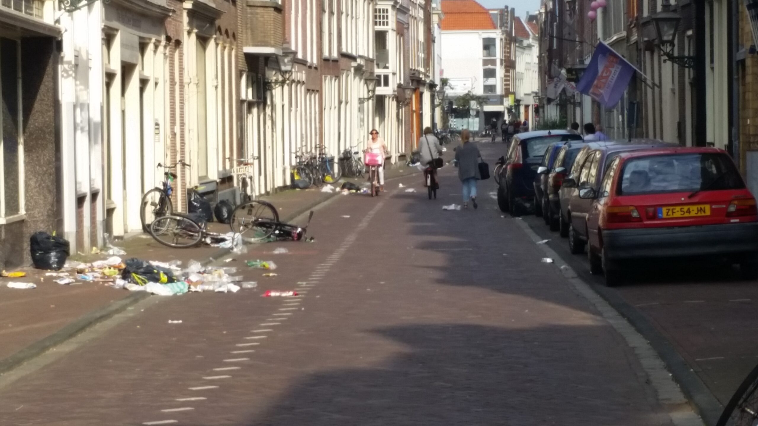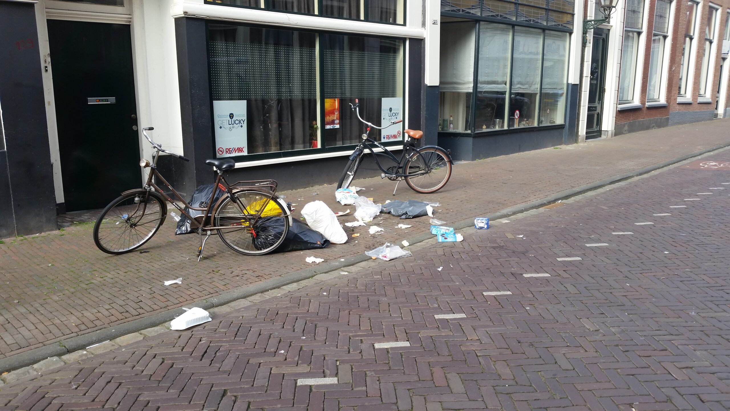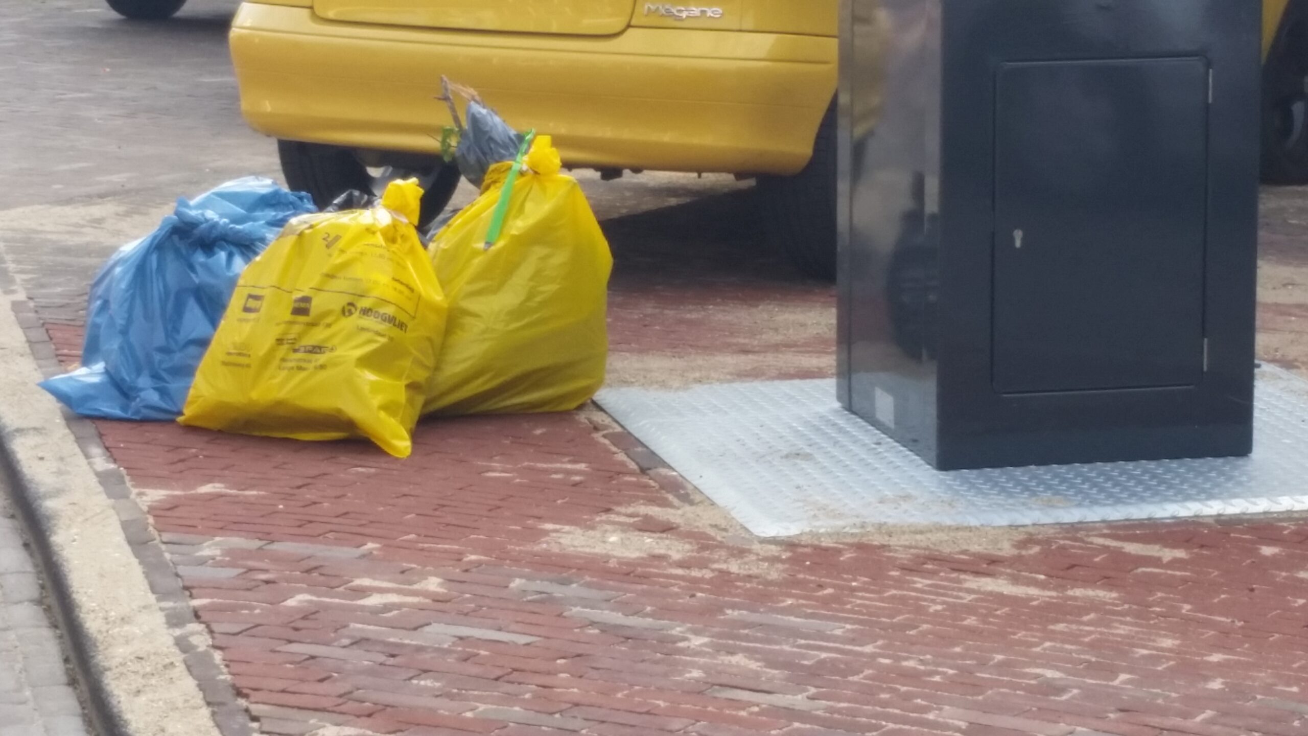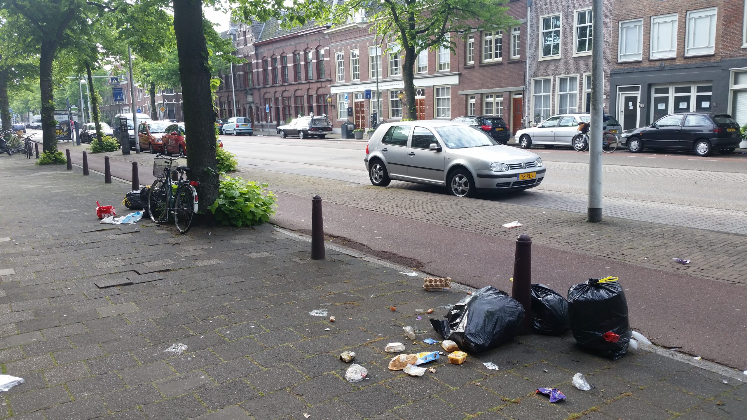 Het lijkt erop dat de problemen met de pasjes inderdaad voorbij zijn. Direct naast de ondergrondse containers kom je nog maar weinig zakken tegen. In zo’n bijna elke straat liggen echter wel opengescheurde zakken. Met name op de Hogewoerd en omgeving zijn het bijna Italiaanse toestanden, maar ook in de Korevaarstraat liggen de bewoners zo te zien niet wakker van een zakje, inclusief bijbehorende gevederde vrienden, meer of minder. Op de Witte Singel staat het ook nog vol met zakken. Daar zijn geen ondergrondse bakken, maar de bewoners hebben ook geen rolcontainers. Desgevraagd beperkt de gemeente zich tot de mysterieuze uitleg dat de inzameling van huishoudelijk afval daar ongewijzigd is.