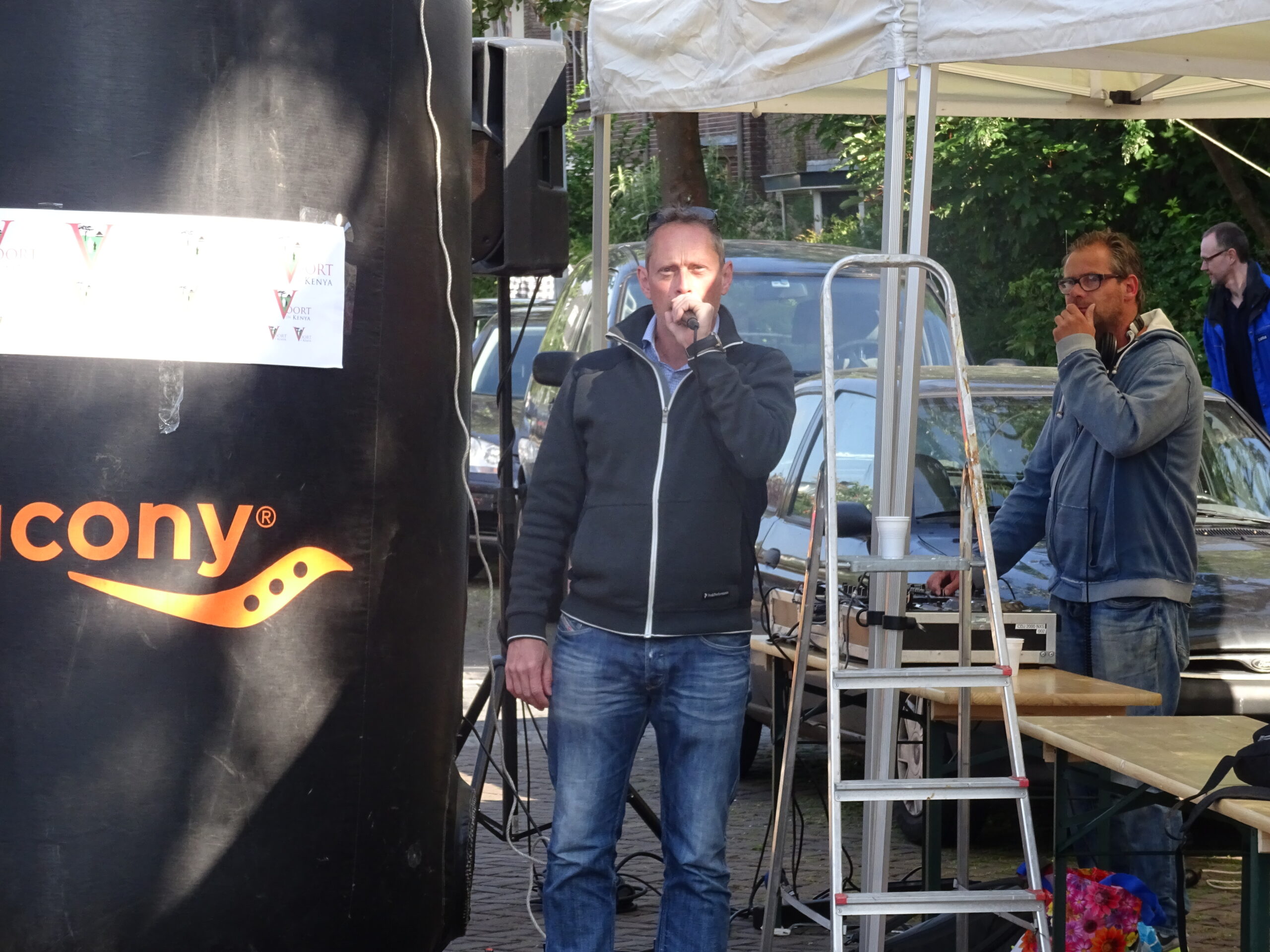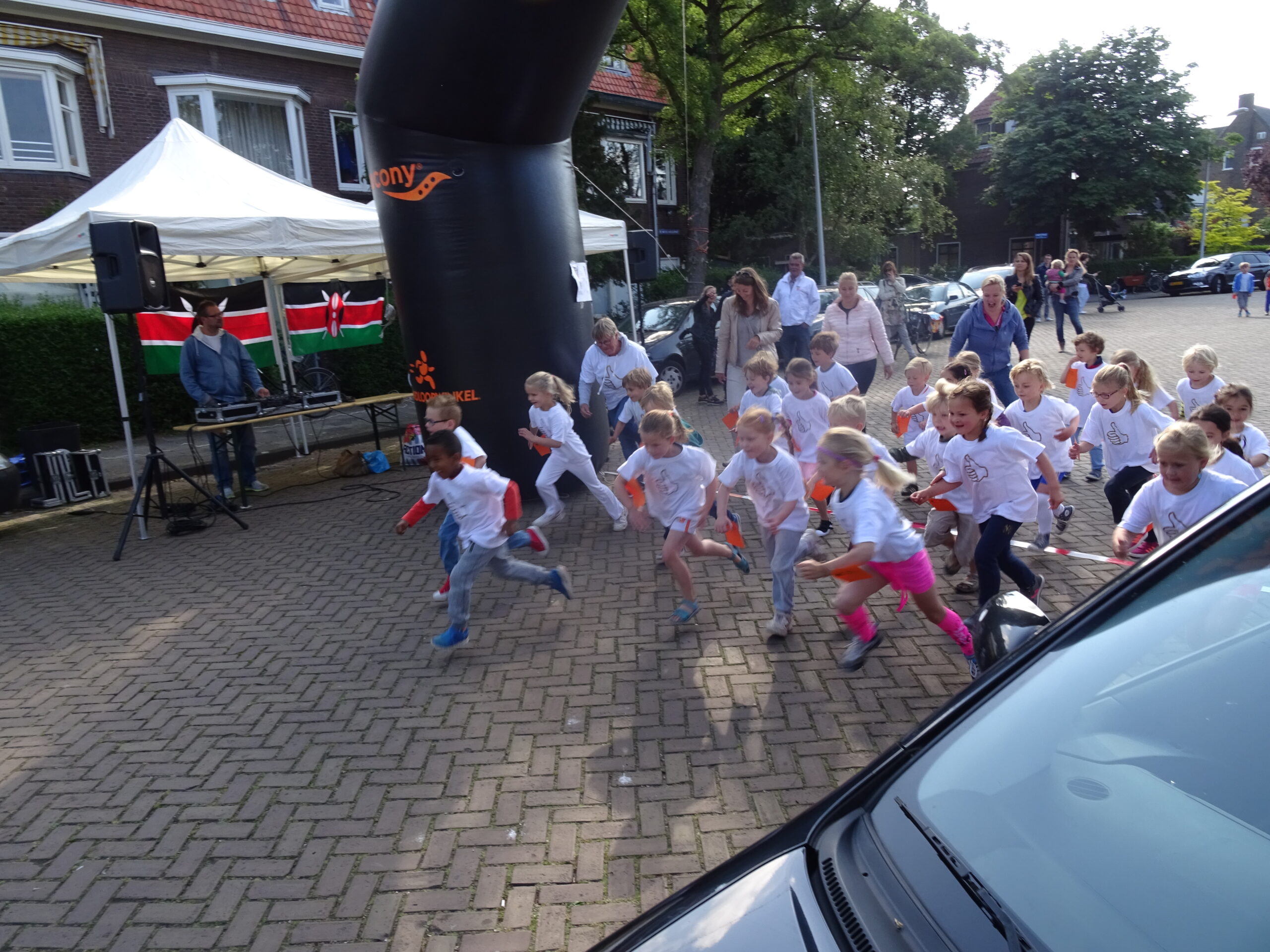 Terwijl de kinderen hun rondje door de wijk renden sprak Chris de Waard met Cees en Mieke van der Voort over het project in Kenia.