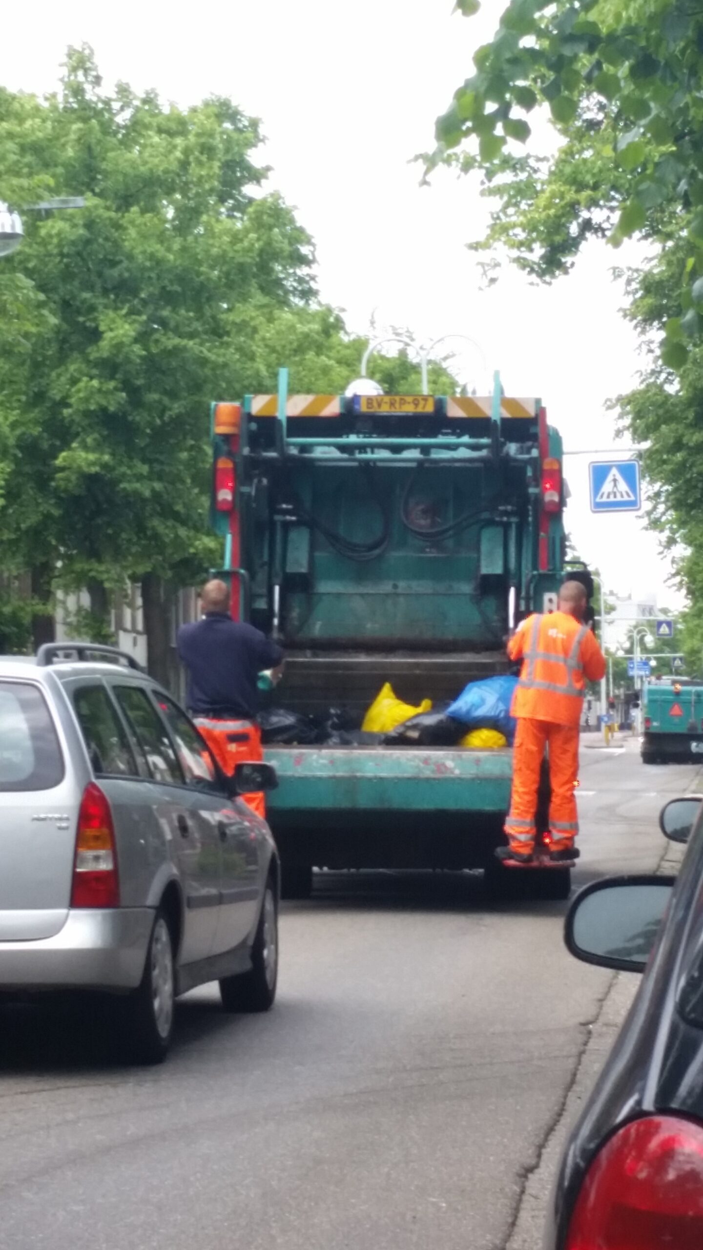 Wethouder Laudy reed gisteren mee met de vuilnisophalers van de gemeente. (Foto: Collin van Gestel).