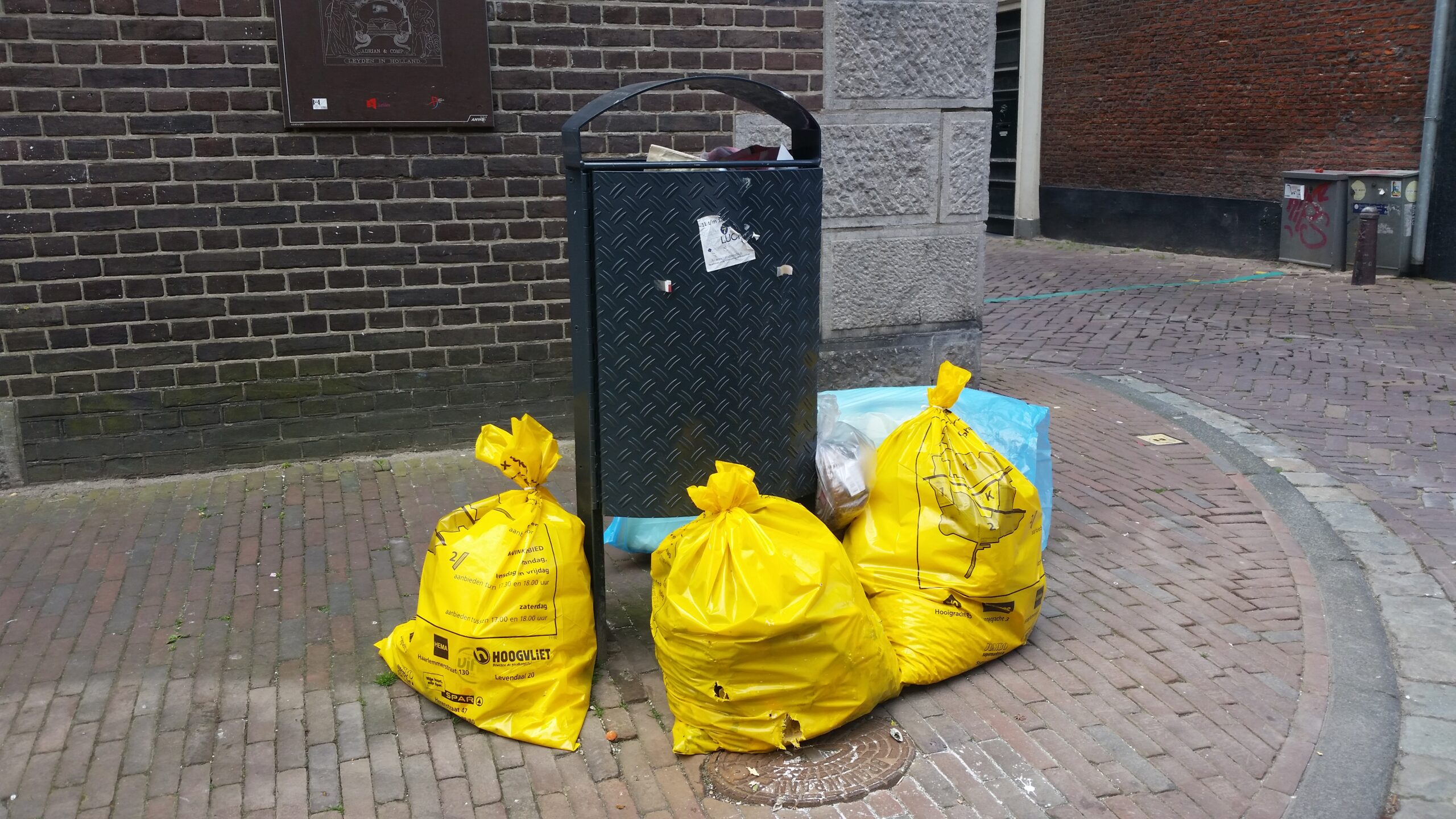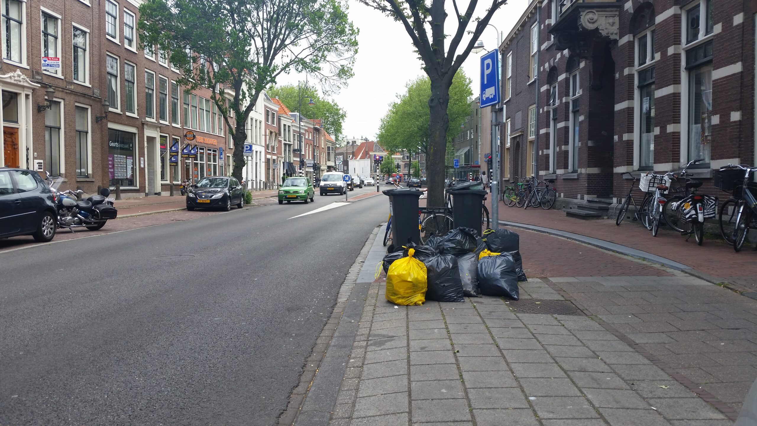De Witte Singel en een deel van de Zoeterwoudsesingel krijgen pas over enige tijd ondergrondse containers. Wethouder Laudy wil ook daar de zakken nu al van straat en komt met een bovengrondse – tijdelijke – oplossing. Tot die tijd staan de zakken nog langs de stoep.