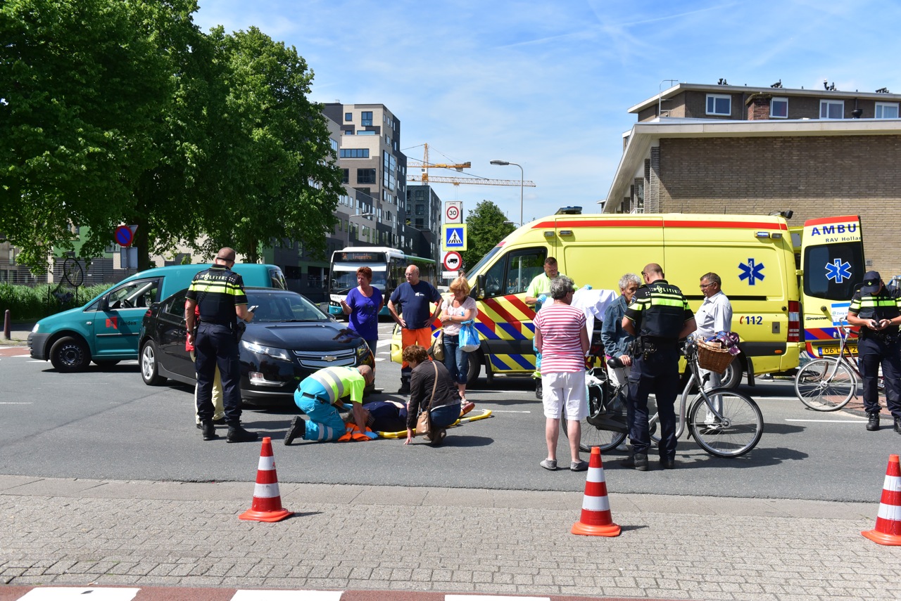 Op de kruising van de Surinamestraat met de Sumatrastraat in Leiden is een vrouw gistermiddag gewond geraakt toen ze op haar fiets werd aangereden door een auto. De vrouw stak de kruising over en kreeg daarbij geen voorrang van een afslaande auto. Ze is met de ambulance naar het ziekenhuis vervoerd.
