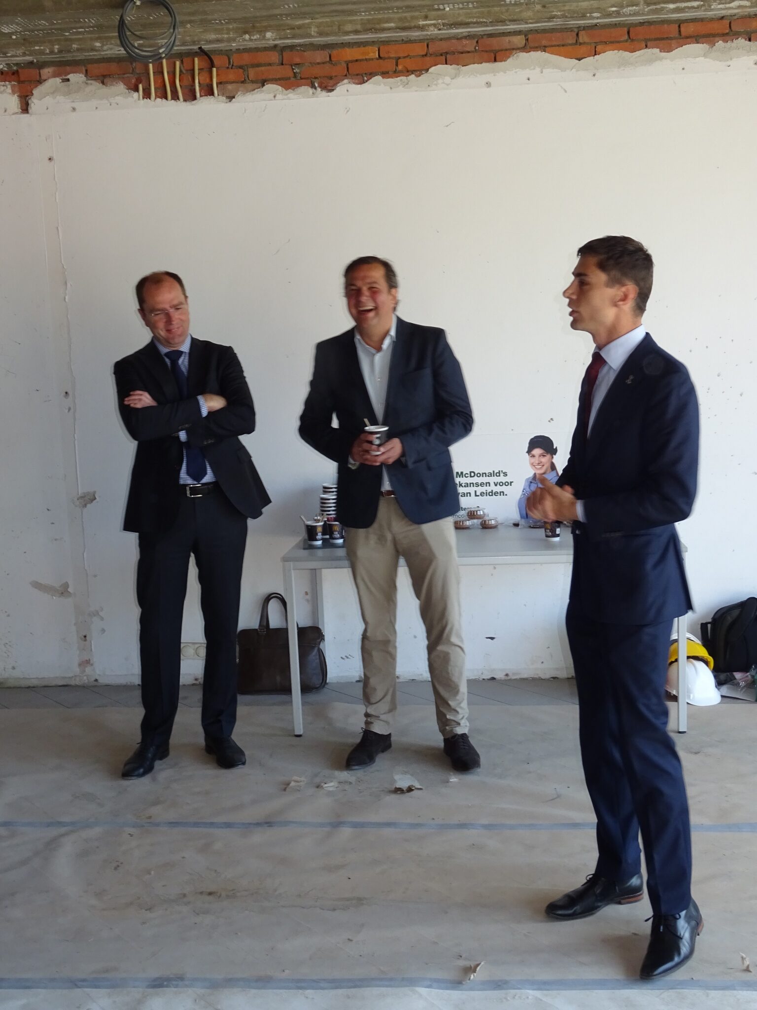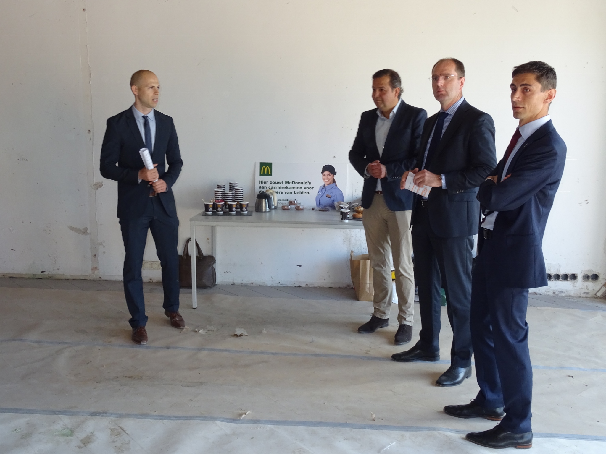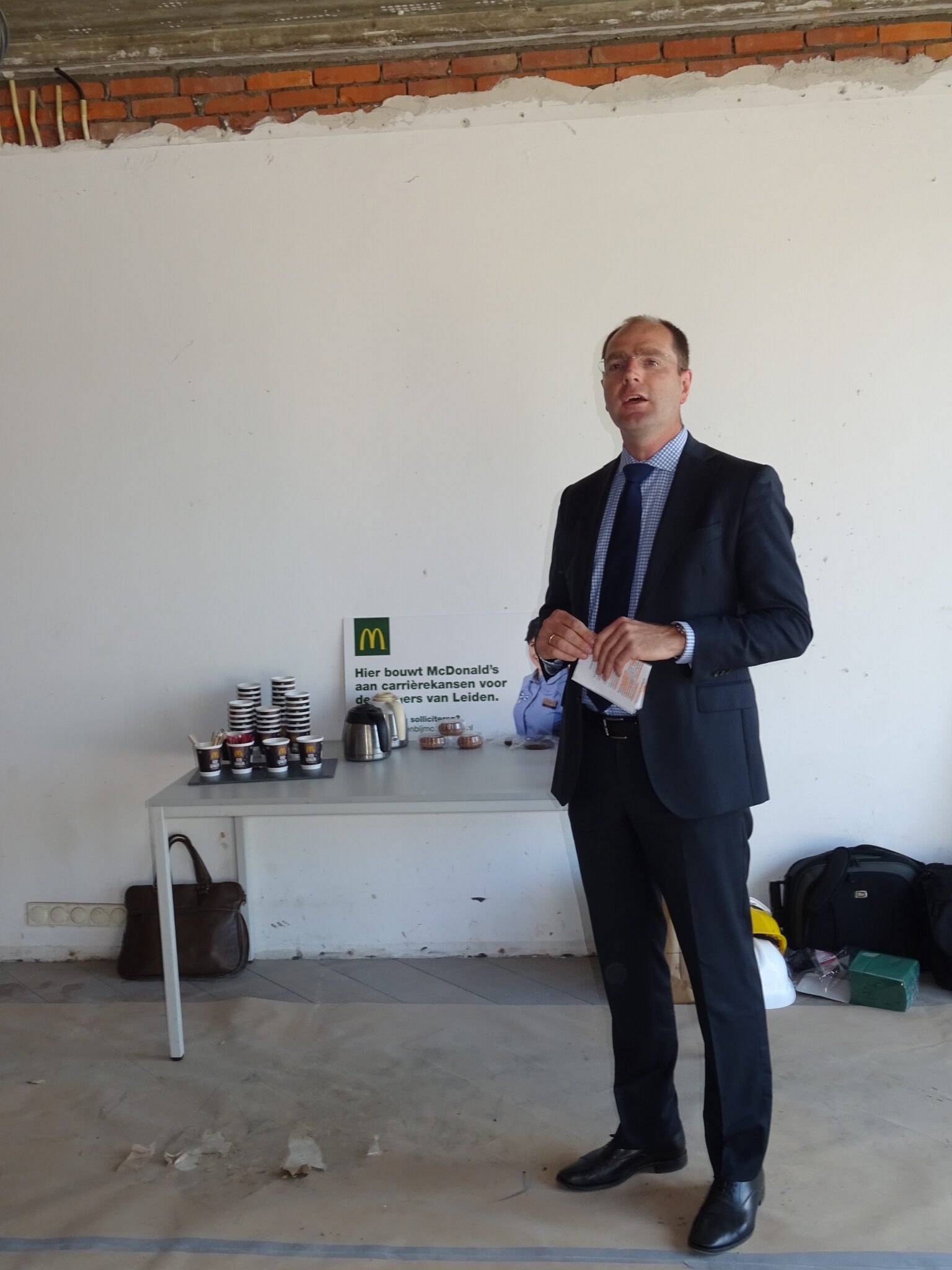 Er wordt al een paar weken gewerkt aan, om en in het voormalige pand van het Leidsch Dagblad op de kop van de Rooseveltstraat bij de Voorschoterweg, maar gisteren was er even een officieel momentje ingelast door McDonalds. Wethouder Laudy kwam de bouw officieel starten. Daarbij roemde hij de Leidse ondernemer Walther Jacobs voor wie dit het derde McDonalds restaurant in Leiden wordt. Jacobs is daarnaast ook franchisehouder van twee hamburgerrestaurants in Alphen aan den Rijn.