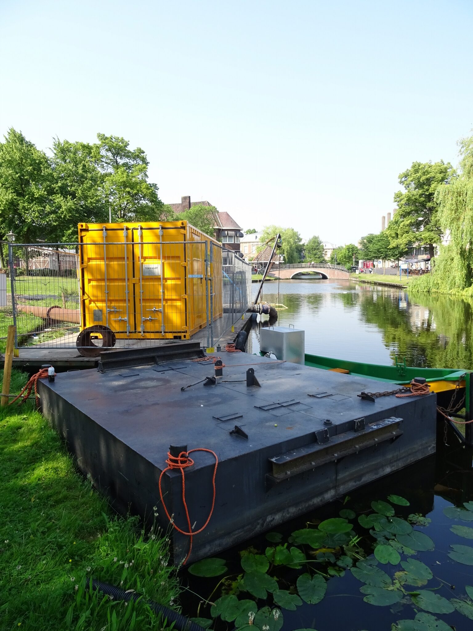 De vijf kilometer lange buis die van de bouwput aan de Lammermarkt naar een depot in de Oostvlietpolder loopt, voldoet prima. Via de buis wordt de grond afgevoerd van de ontgraving van de Lammermarkt. Daar wordt een 24 meter diepe put gemaakt voor de diepste parkeergarage die ooit in Nederland is gebouwd. Het hydraulisch transporteren van de grond voorkomt een stroom van zandwagens door Leiden. Zo’n 50 per dag en dat 57 dagen lang.