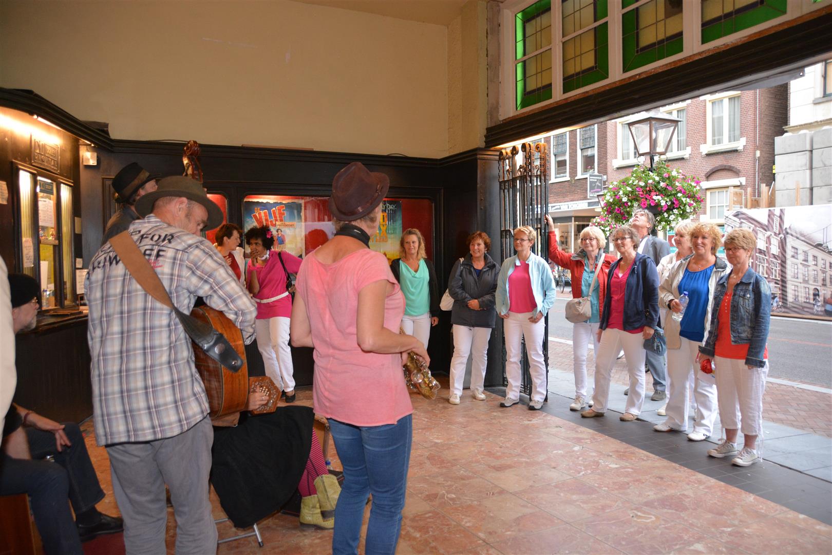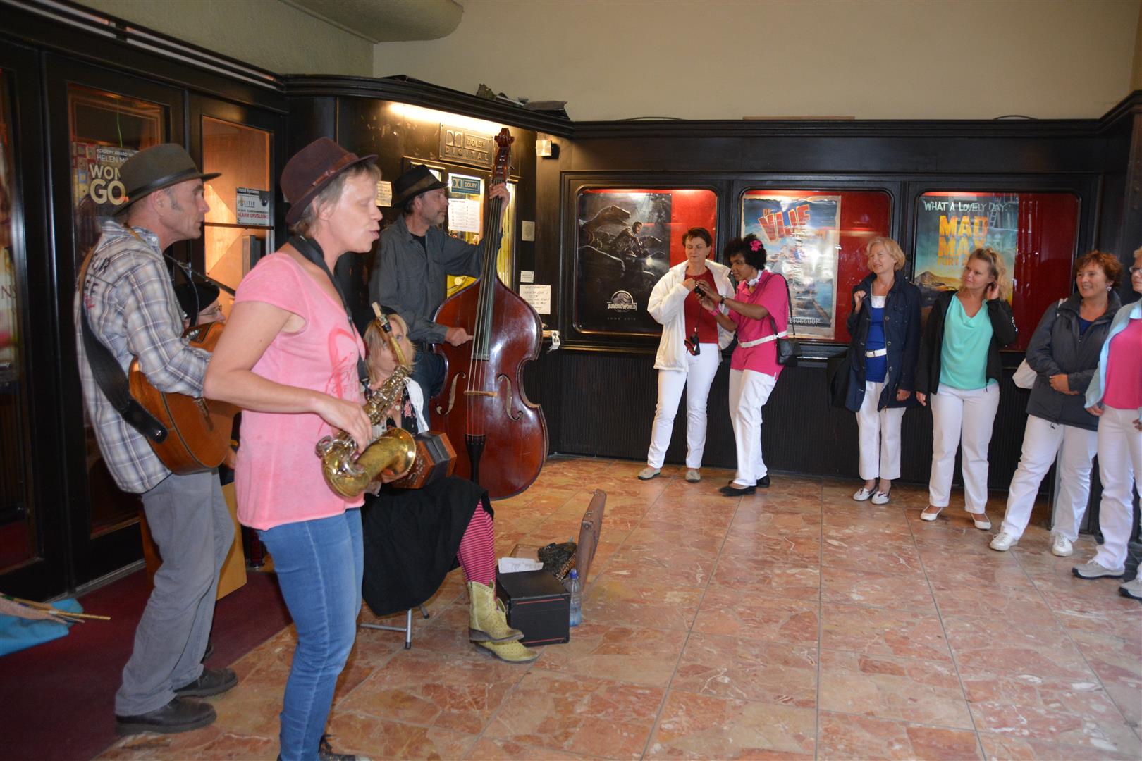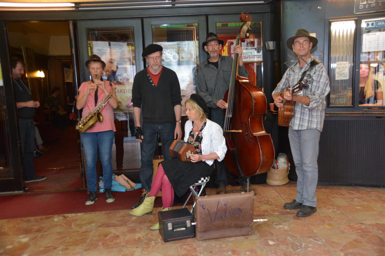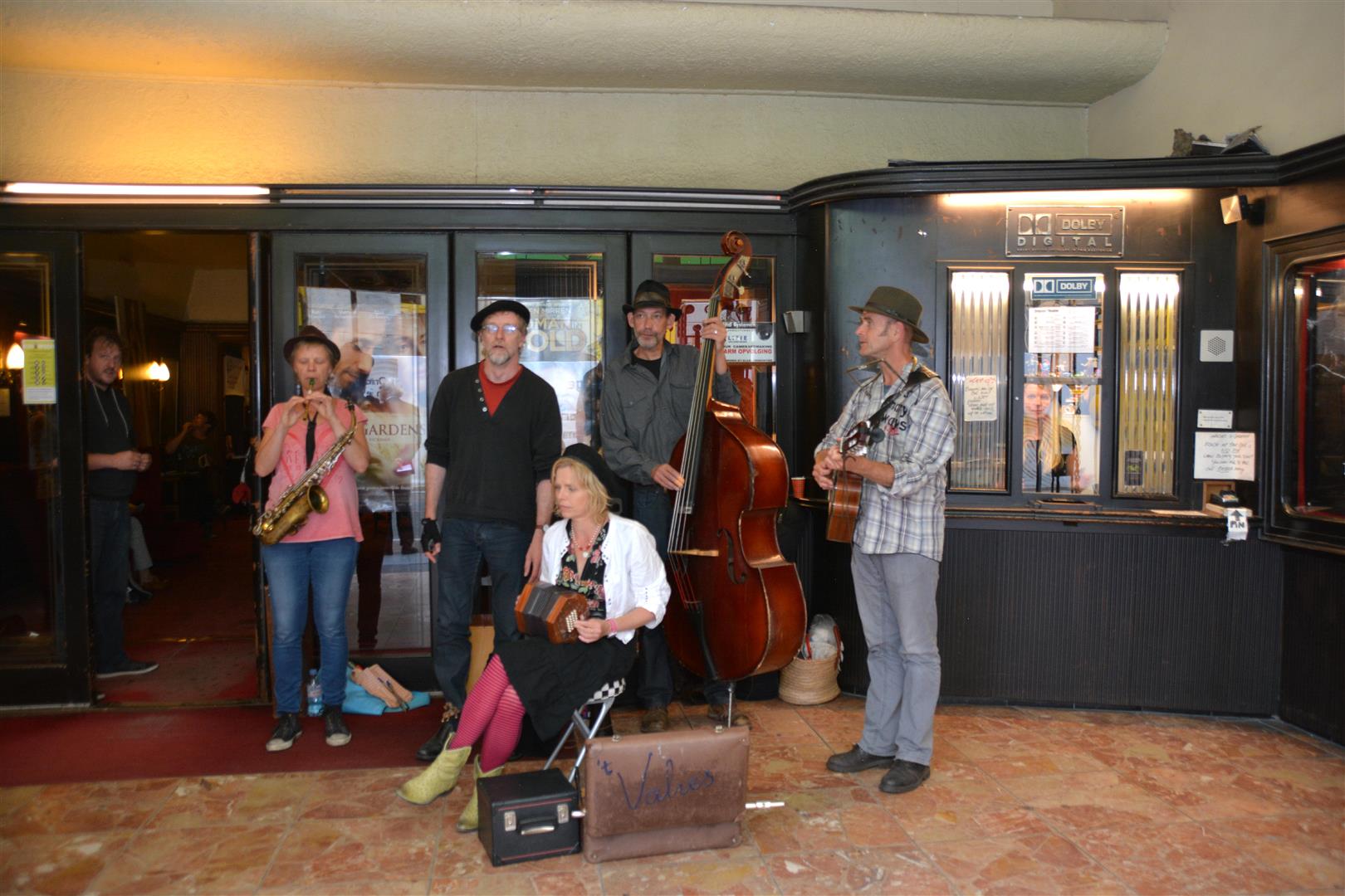 Meteen al aan het begin van de avond was het een drukte van belang bij de Trianon. Niet alleen binnen, maar ook rond de entree waar ’t Valies het publiek vermaakte met leuke liedjes uit hun eigen en andermans reportoire. En met een gezellige Sleutelstad jingle.