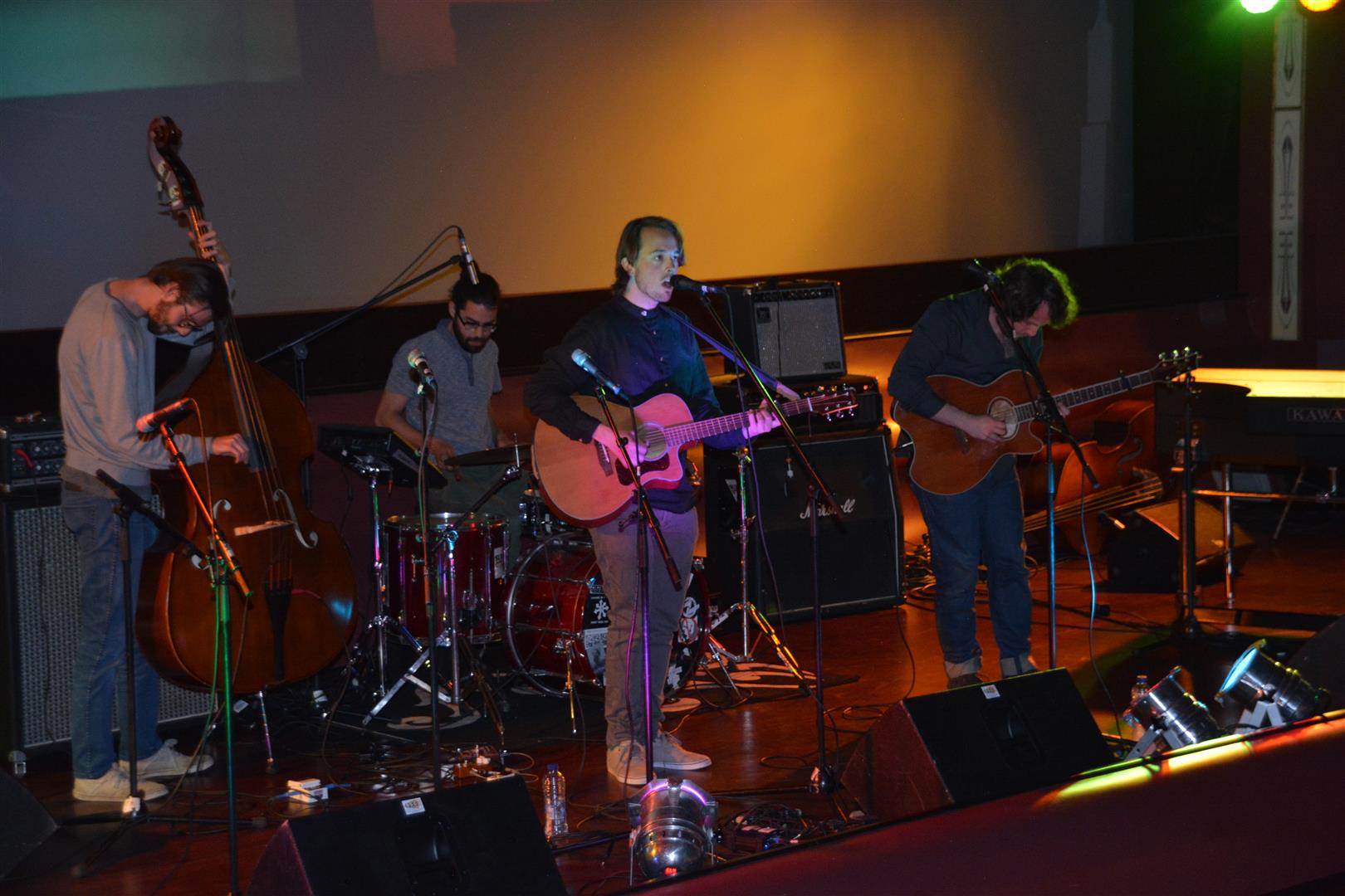Het door Sleutelstad FM georganiseerde evenement ‘Cultuur071 Live in Concert’ was een groot succes. Niet in de laatste plaats door de geweldige line-up en de wel erg speciale speelplek: het podium voor het filmdoek in de grote zaal van het Trianon Theater aan de Breestraat. Enige minpuntje: de avond liep erg uit, waardoor niet iedereen het einde meemaakte op deze doordeweekse avond. “Ik was graag nog even gebleven, maar ik moet morgen werken en dus nu naar bed,” was een vaker gehoorde opmerking. Dat uitlopen kwam vooral door de wissels die gemaakt moesten worden op het podium. Die duurden toch net even iets langer dan vooraf gedacht.
