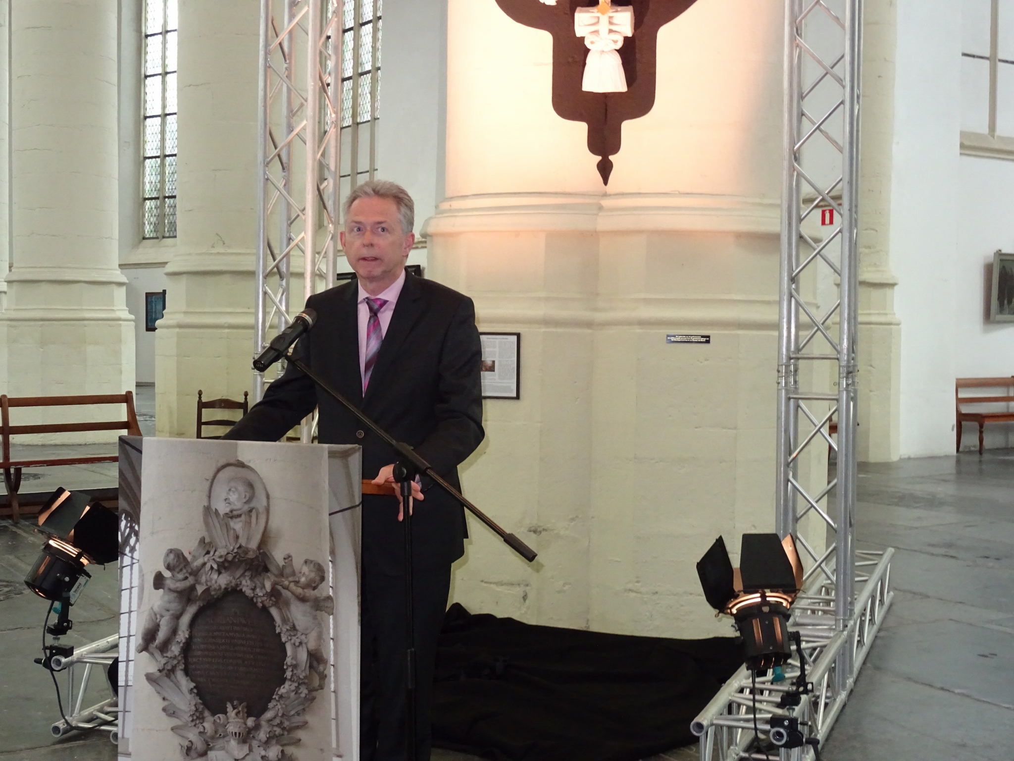 Chris de Waard ging kijken bij de onthulling van de gerestaureerde epitaaf en sprak met de betrokkenen.
