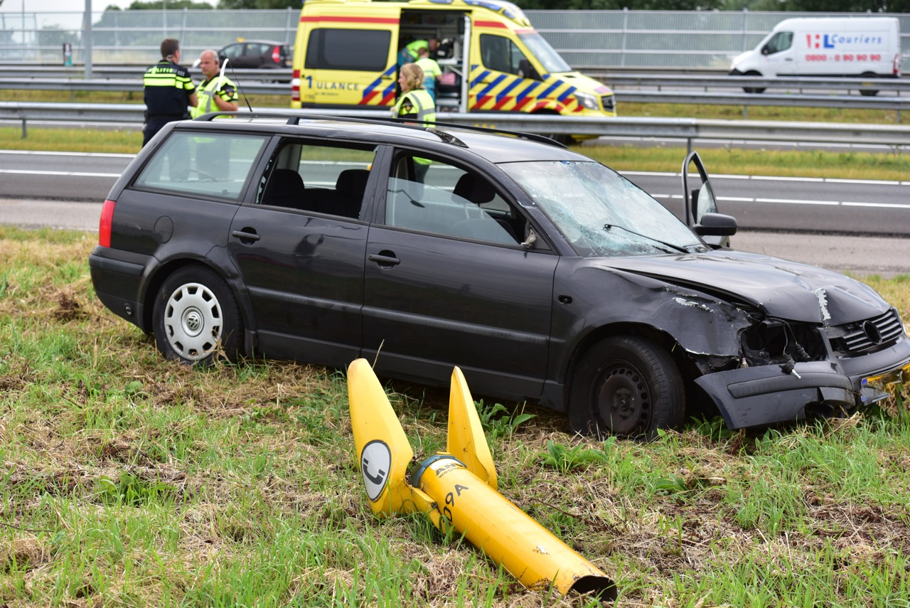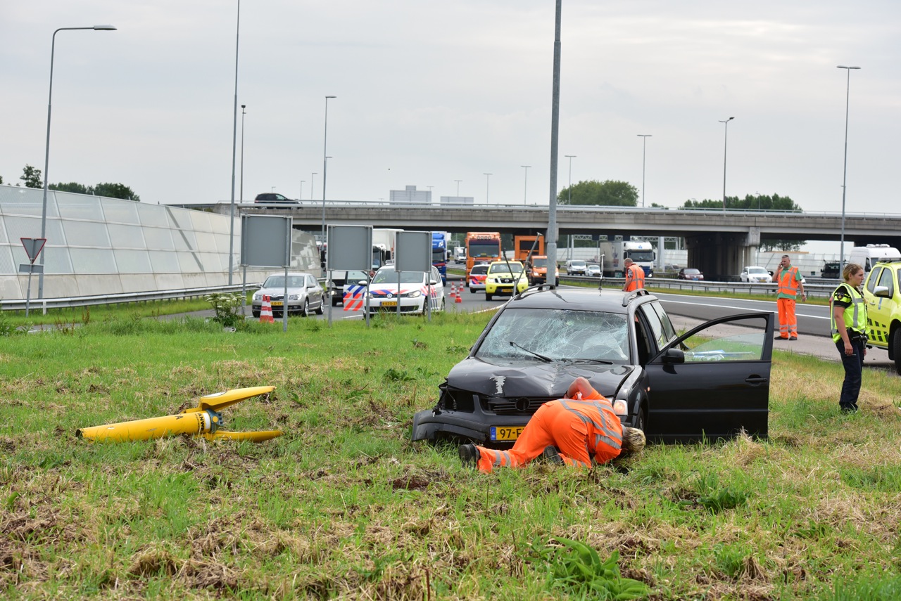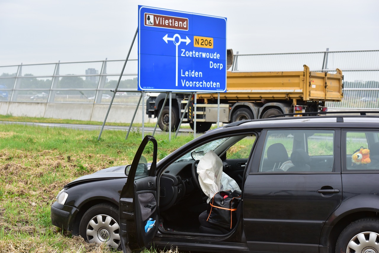 Een vrouw is op de afslag van de Rijksweg A4 bij Leiden gewond geraakt, nadat ze op de afrit rechtdoor was gereden. De vrouw raakte een aantal verkeersborden en een ANWB praatpaal. Ze is met de ambulance naar het ziekenhuis vervoerd.