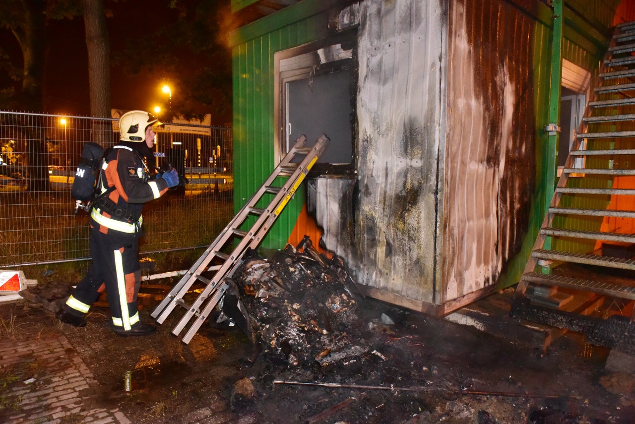 Op de Engelendaal in Leiderdorp is vannacht een bouwkeet in brand gestoken. De schade bleef beperkt, omdat de brandweer toevallig in de directe omgeving al bezig was met het blussen van een containerbrandje. Of de twee zaken met elkaar te maken hebben, is niet bekend.