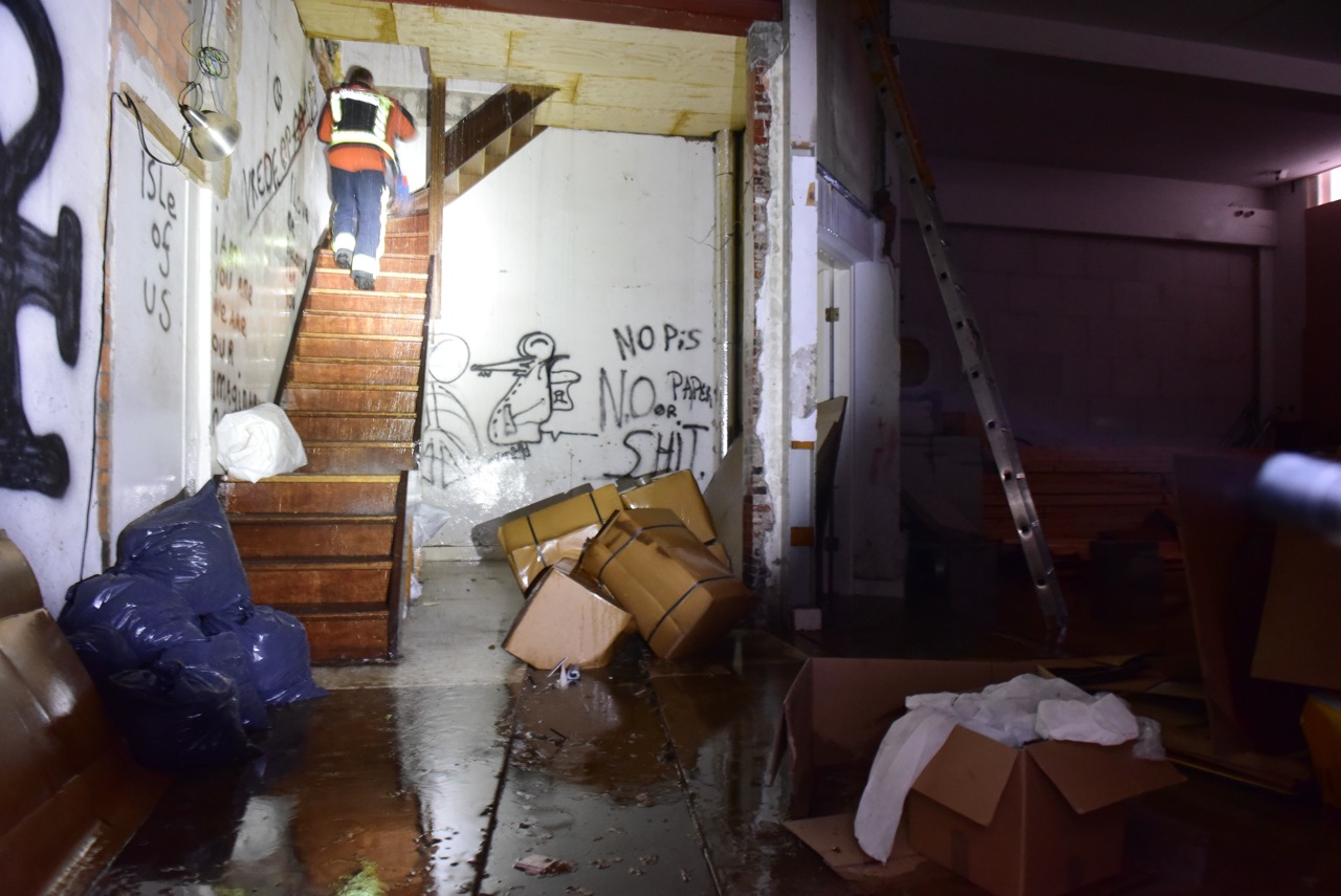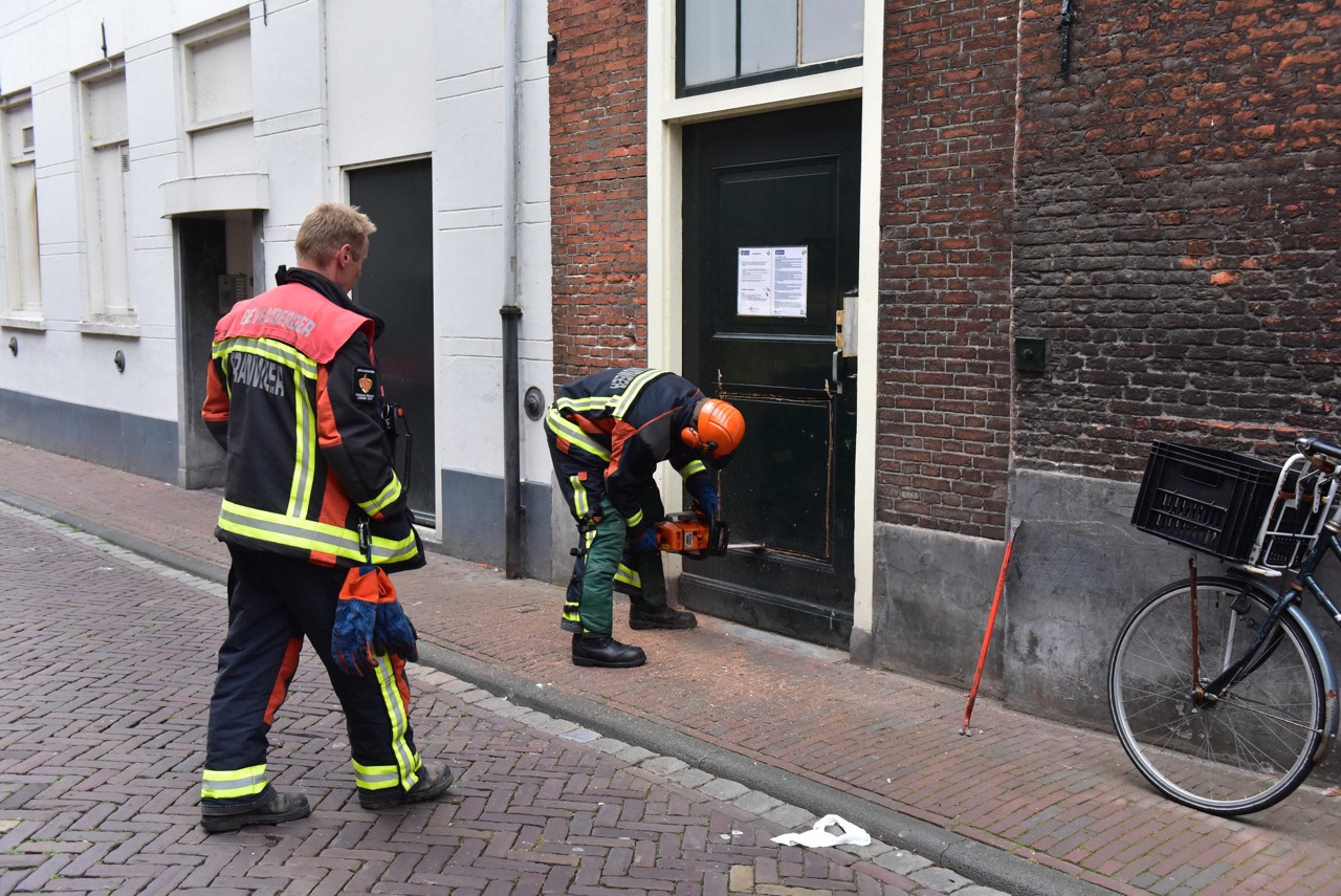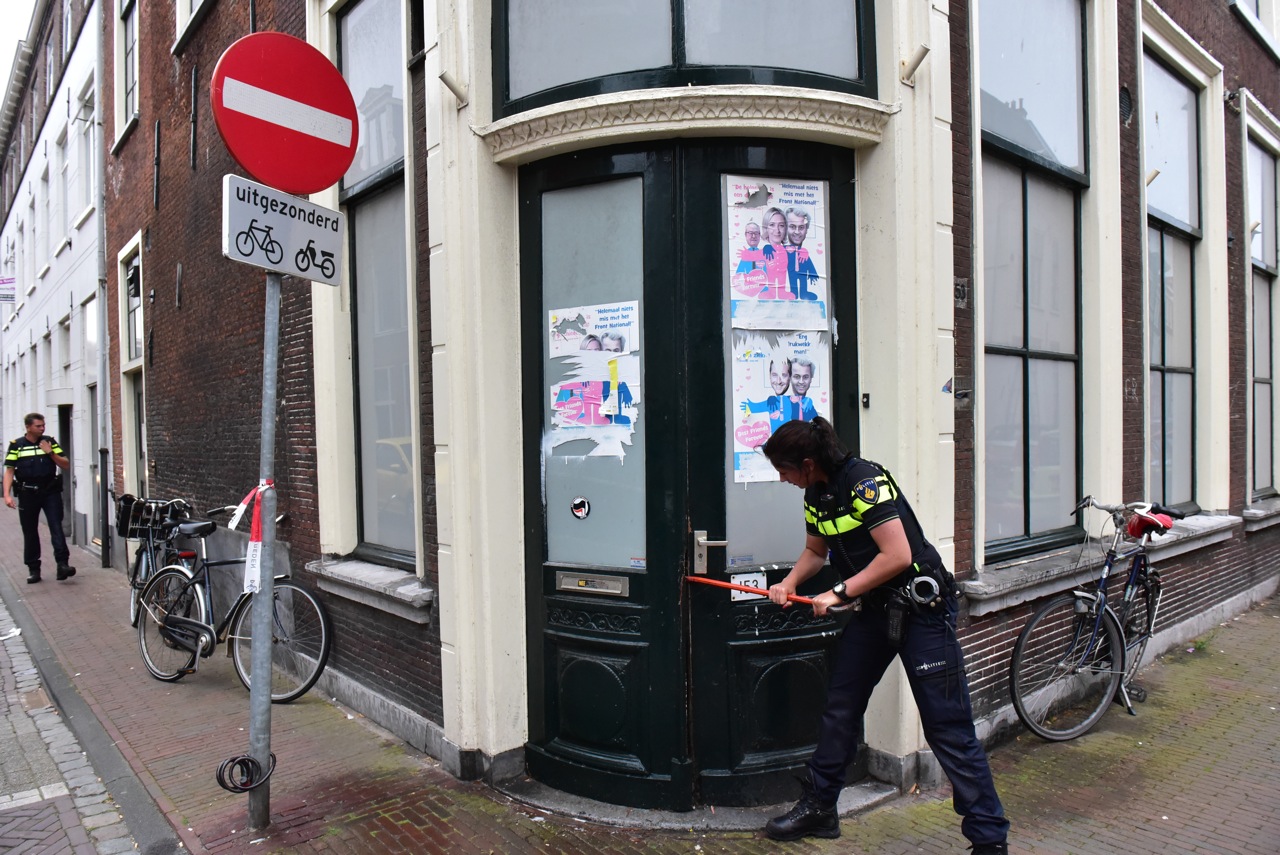Wateroverlast in een pand op de hoek van de Rijnstraat en de Hogewoerd heeft er gisteren voor gezorgd dat de politie een hennepkwekerij kon oprollen.Het leegstaande pand was al geruime tijd gebarricadeerd. Volgens pamfletten met politie-logo op de deur om te voorkomen dat het gekraakt zou worden. De brandweer heeft een stuk uit de deur moeten zagen om de politie toegang het het pand te verschaffen.
