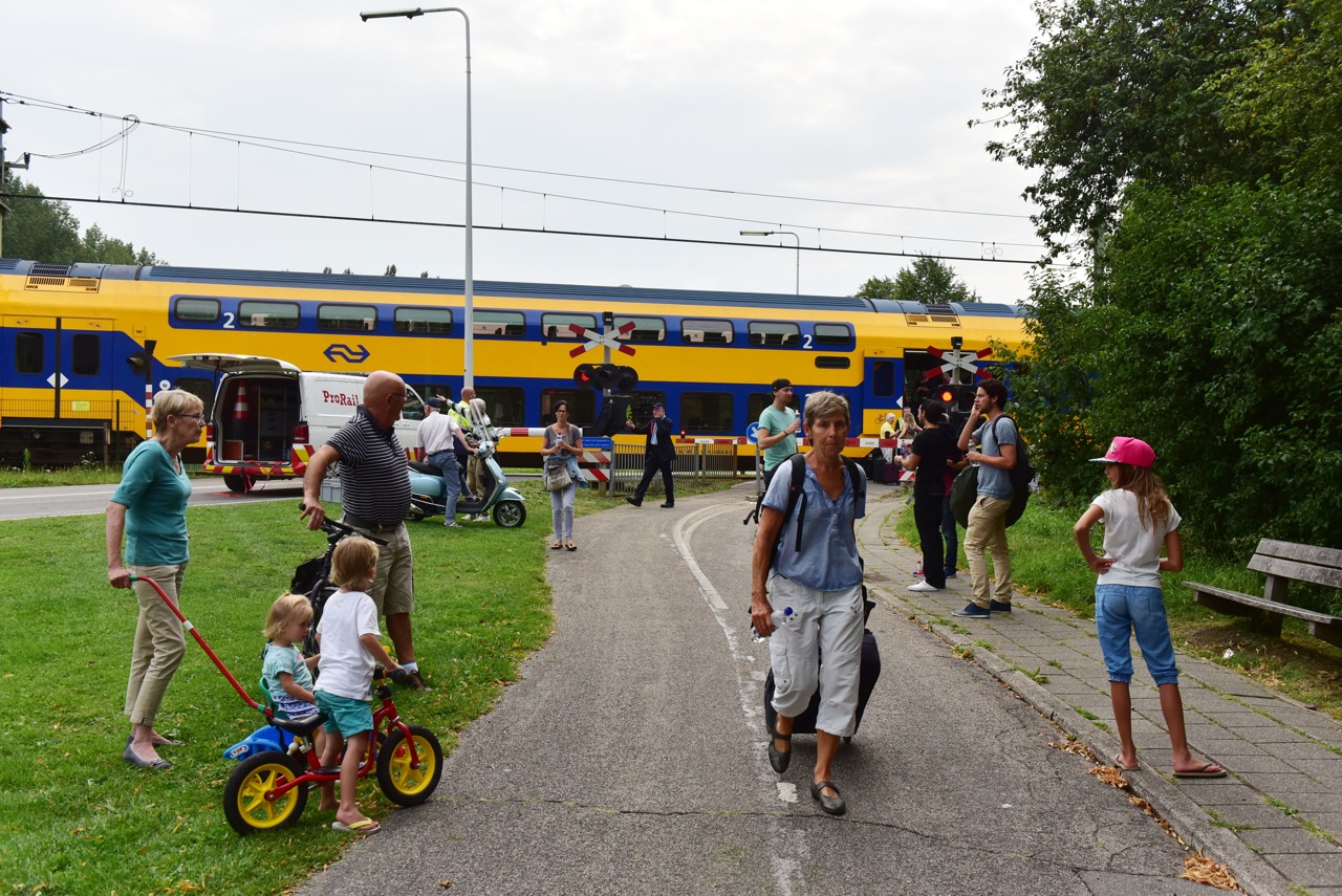 Vrijdagmiddag is precies op de spoorwegovergang in de Kanaalweg een trein stilgevallen. Doordat de trein zonder stroom stond, werd het al snel erg warm, waarop de passagiers uit de gestrande wagons werden gehaald. Ze konden te voet naar station Leiden Lammenschans lopen. Een tweede trein werd opgeroepen om de stilgevallen trein weg te slepen.